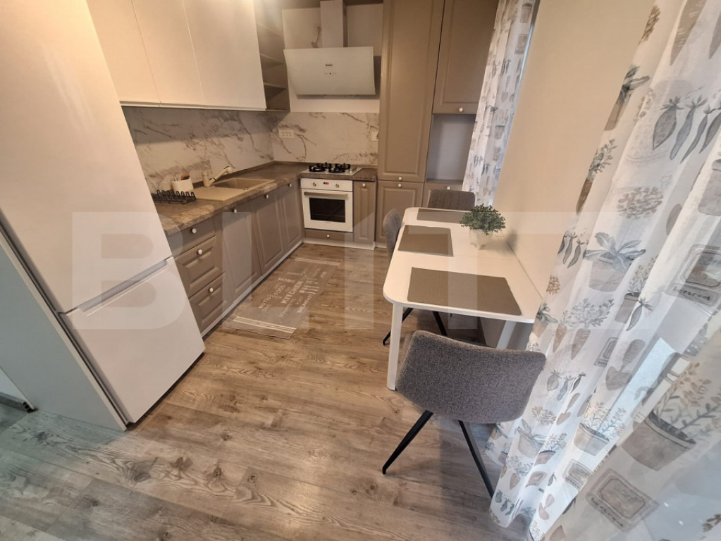 Blitz va propune un apartament modern, gata de mutare, într-una dintre cele mai căutate zone din Timișoara. Localizare: Zona Soarelui – zonă liniștită, cu acces rapid la mijloace de transport, școli, supermarketuri și parcuri. Apartamentul dispune de centrală proprie cu încălzire in pardosea, asigurând un climat plăcut și costuri reduse la întreținere pe tot parcursul anului. Se vinde complet mobilat și utilat, fiind gata pentru mutare imediată — o alegere excelentă atât pentru locuit, cât și ca investiție. Avantaje și dotări: -Bloc anvelopat termic -Etaj intermediar (6/8) -Centrală proprie -Design luminos si aerisit -Finisaje moderne -Mobilat și utilat complet- electrocasnice incluse Zonă liniștită, aproape de mijloace de transport, magazine, parcuri , școli și alte puncte de interes. Preț negociabil Perfect pentru o familie tânără, un cuplu sau chiar ca investiție pentru închiriere (zona are cerere ridicată). Nu rata ocazia să te muți într-un apartament modern, într-o zonă excelentă a Timișoarei! Cod ofertă / ID BLITZ: P157128 Id intern: P157128