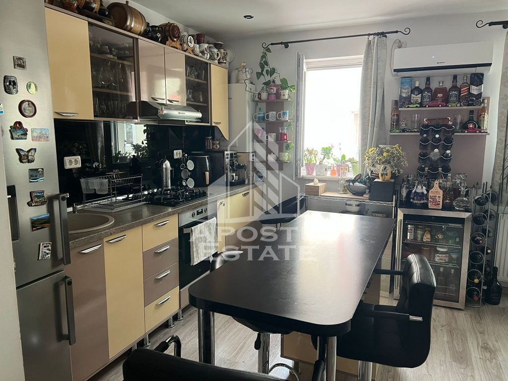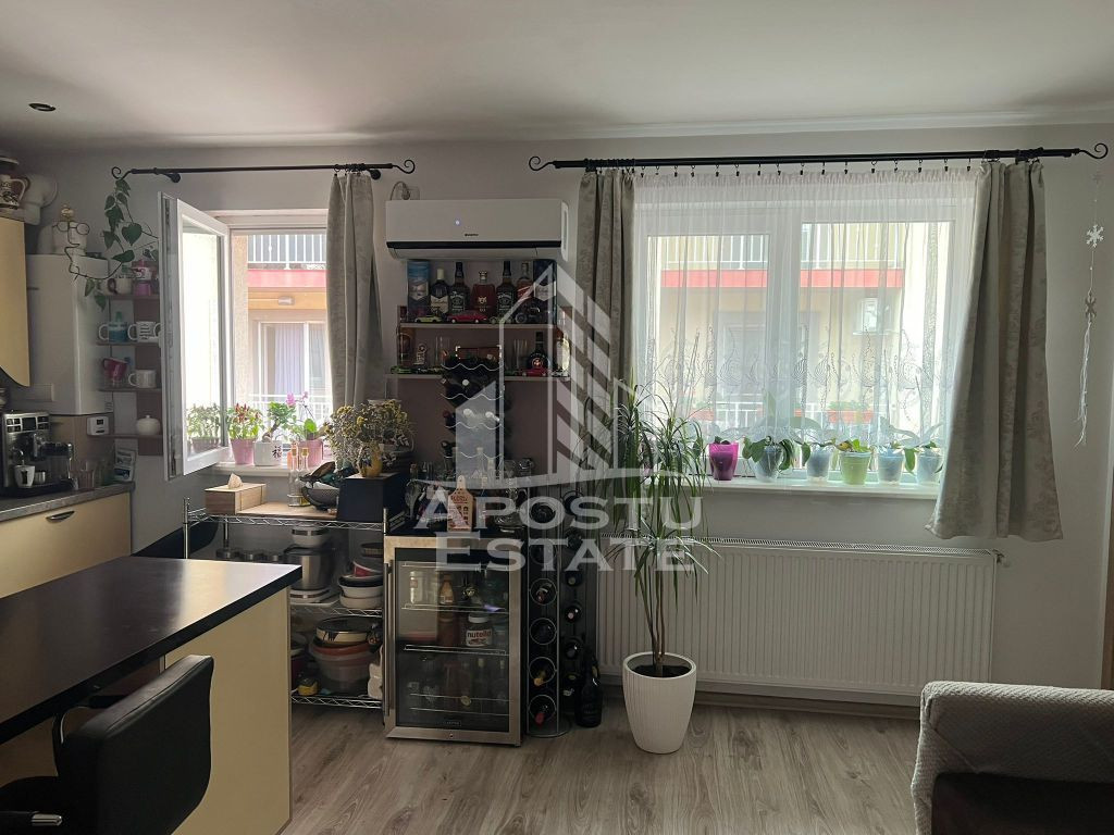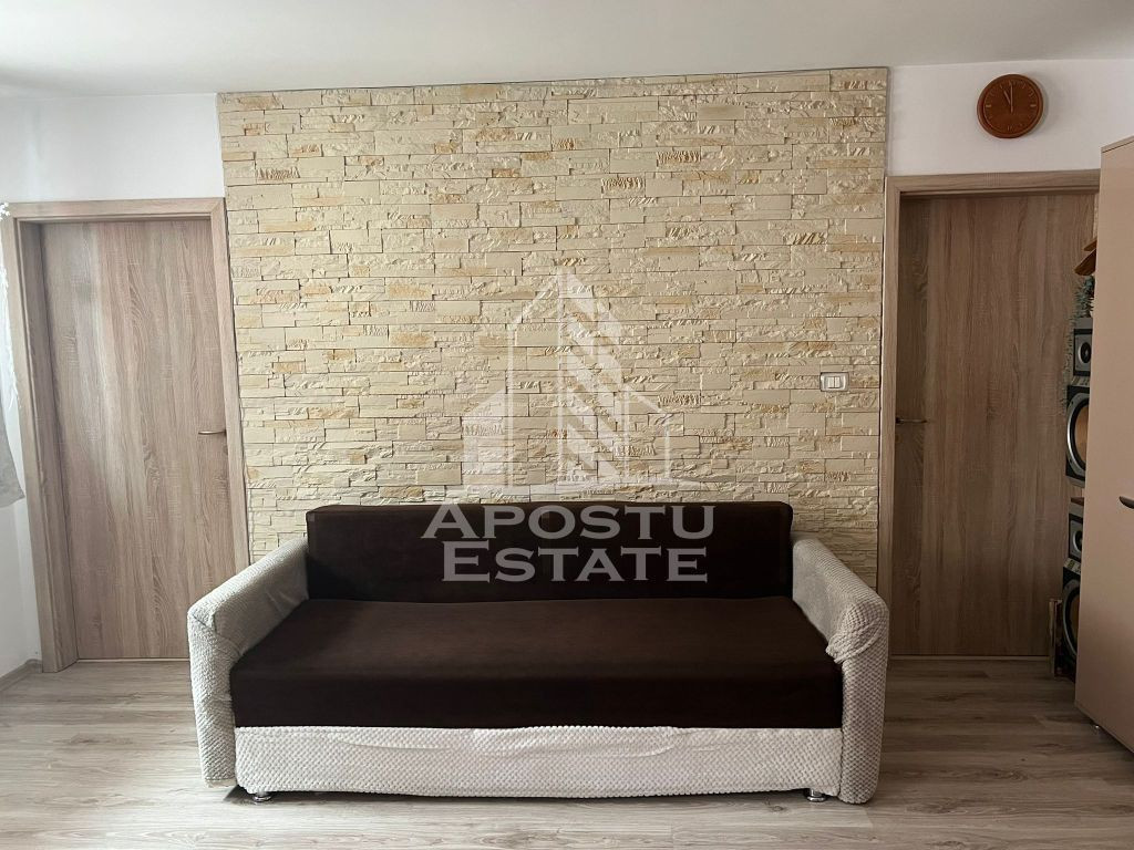APOSTU ESTATE va propune spre vanzare un apartament cu 2 camere situat in Giroc la asfalt. Drumul de acces spre imobil este asfaltat. In apropiere sunt magazine si supermarket-uri precum Lidl, Profi, Mega Image, Penny, Scoala, gradinita și parc la o distanta de 2 minute, acces facil la mijloace de transport in comun. Apartamentul se vinde complet mobilat si utilat, precum se observa in imagini. Imobilul dispune de o suprafata de 42 mp si este situat la etajul 2. Compartimentare: - hol acces. - bucatarie cu living open space. - dormitor. - baie cu geam si cada. - terasa. Detalii tehnice: - constructie realizata in anul 2015 din caramida Porotherm de 25 cm. - exterior izolat cu polistiren de 10 cm eps 80. - pereti despartitori complet din caramida (fara rigips) tencuiti mecanizat finisati cu glet si vopsea lavabila. - geamuri termopan pentru izolare fonica si termica superioara, foarte mari si luminoase dotate cu rulori. - centrala proprie pe gaz, incalzire prin calorifere. - aparataje modulare Gewis. - usa acces securizata, usi interioare Porta Doors.. - electrocasnice noi, in stare perfecta de functionare. (frigider, masina de spalat rufe, aragaz, cuptor, hota) - aparat pentru aer conditionat. - 1 loc de parcare in cf. Utilitati complete: curent, apa de la retea, canalizare, gaz. Pentru mai multe detalii nu ezitati sa ne contactati! Acceptam orice fel de credit bancar. Oferim consultanta si solutii financiare prin colaboratorii nostri pentru a obtine cel mai avantajos credit Ipotecar sau Noua Casa. Va asteptam cu drag la o vizionare chiar astazi! CP2793474