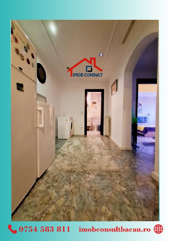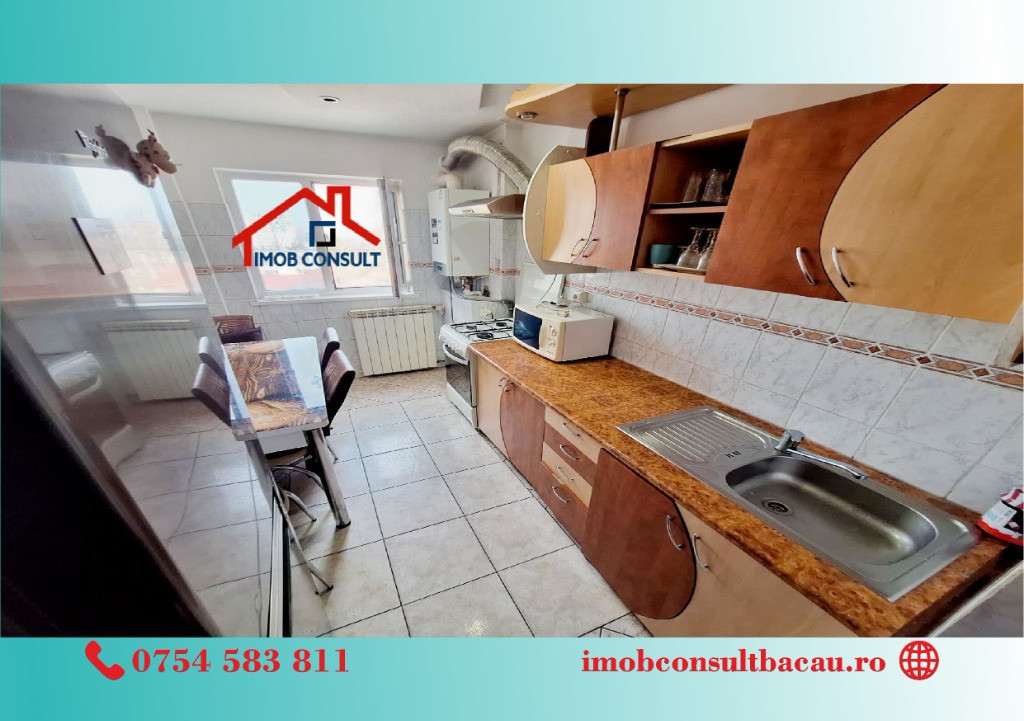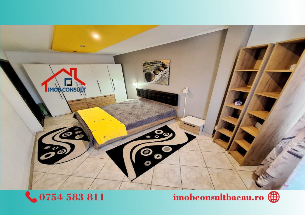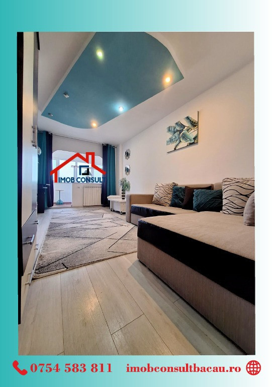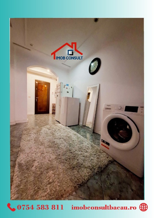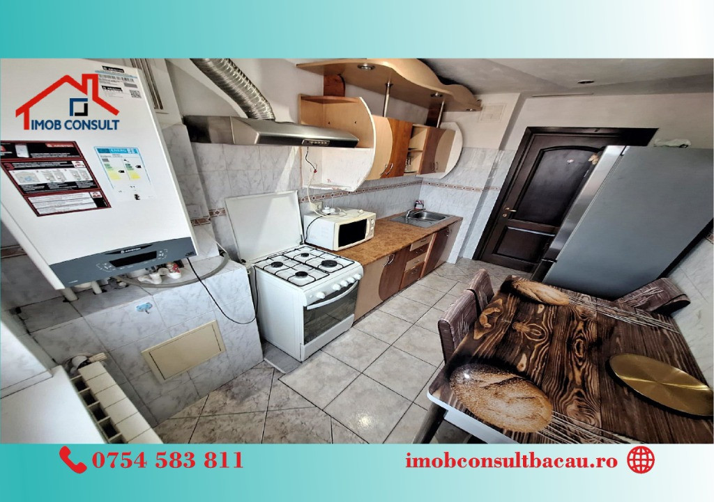 Imob Consult Bacău vă propune spre închiriere un apartament cu 2 camere, situat într-un bloc de apartamente din proximitatea Pieței Centrale, o zonă apreciată pentru accesul facil către magazine, instituții, mijloace de transport și puncte de interes urban. Locuința dispune de compartimentare decomandată, oferind confort și intimitate, fiind compusă din living, dormitor, bucătărie, baie cu geam pentru aerisire naturală, hol spațios și balcon închis. Apartamentul beneficiază de centrală termică proprie, tâmplărie PVC cu geam termopan și este situat într-un imobil prevăzut cu lift nou. Se închiriază complet mobilat și utilat, fiind pregătit pentru mutare imediată. Pentru detalii suplimentare și programarea unei vizionări, vă rugăm să ne contactați: • Cozmin: 0754 583 811; • Corina: 0740 288 297, De asemenea, vă așteptăm la sediul agenției Imob Consult Bacău, situat pe strada Banca Națională nr. 27, la intersecția cu Str. Neagoe Vodă, lângă Irish Pub. Echipa noastră vă stă la dispoziție pentru a vă oferi toate informațiile necesare și pentru a vă sprijini în alegerea locuinței potrivite. Vă stăm la dispoziție pentru a transforma această oportunitate în noul dumneavoastră cămin!