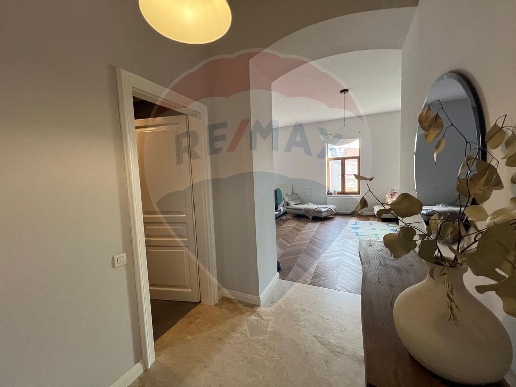 Avem plăcerea să vă propunem spre închiriere un apartament Ultrafinisat cu 2 camere în Palatul Füchsl Apartamentul este situat la etajul 2, are o suprafață utilă de 100 mp și este compartimentat astfel : - Hol de acces - Bucătărie open space - 1 Dormitor matrimonial - 1 Living spațios - 1 Baie cu duș Apartamentul este complet mobilat și utilat, fiind inclusă o mașină de spăla rufe, AC, TV Bucătăria este dotată cu frigider, hotă, plită, mașină de spălat vase, tot mobilierul este complet nou. Se închiriază doar pe termen lung și nu se acceptă animale de companie sau fumatul în interior. Este poziționat cu vedere la Sinagoga Ortodoxă si beneficiaza de o priveliște superbă. Vă invit să programați o vizionare, iar pentru mai multe detalii vă stau la dispoziție!