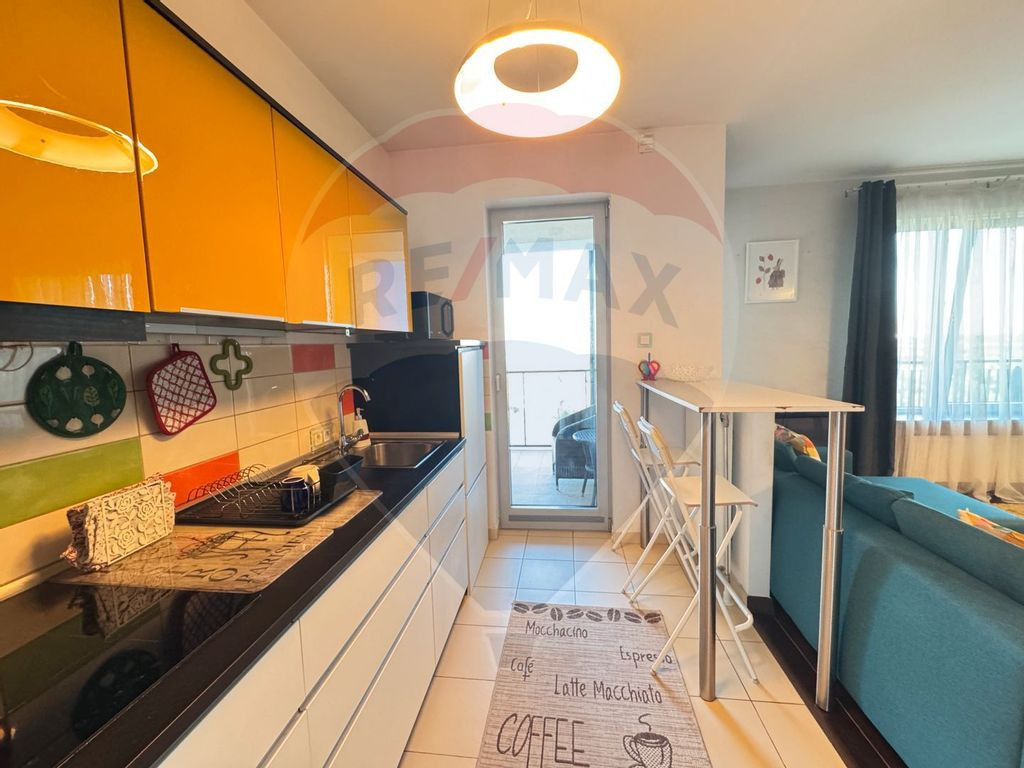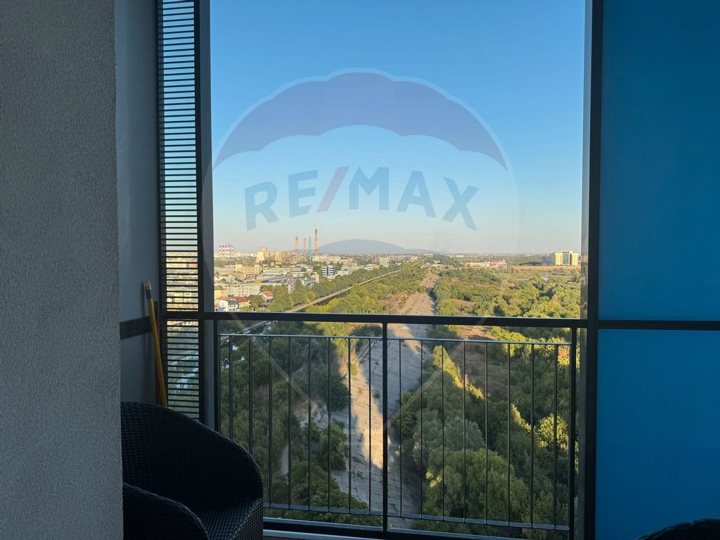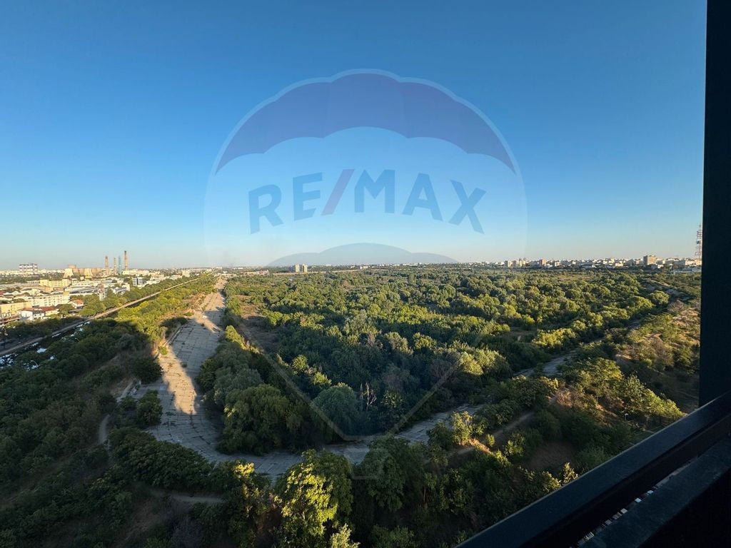Va propun spre inchiriere un apartament de 2 camere situat in Complexul Rezidential Asmita Gardens. Apartamentul se afla la etajul 14 intr-un turn cu 17 etaje si are orintare S-E. Este liber, complet mobilat si utilat gata pentru a fi locuit. Apartamentul este foarte spatios si bine compartimentat, are 58 mp utili si o terasa generoasa de 10 mp cu vedere catre Parcul Natural Vacaresti. Apartamentul dispune de sistem de climatizare centralizat si panou de comanda in camera pentru reglarea temperaturii. Impartirea apartamentului este perfecta in zona de zi si zona de relaxare. Astfel, zona de zi are living, bucatarie deschisa, baie de serviciu si acces pe terasa. Zona de relaxare are dormitor cu baie matrimoniala, hol si dressing. Zonele sunt separate cu usa. In living exista canapea extensibila, masa cu scaune si televizor. Bucataria este deschisa, utilata (aragaz, cuptor, cuptor cu microunde, filtru de apa si cafea, combina frigorifica etc), cu iesire spre terasa si vedere spre Parcul Natural Vacaresti. Cele doua bai, dispuse strategic: o baie cu cada langa dormitorul matrimonial si un wc de serviciu. Pe ambele holuri exista dressing si spatii de depozitare. Accesul pe teresa se face atat din bucatarie cat si din living. De pe terasa puteti avea vedere ampla spre Parcul Natural Vacaresti, panoramica asupra sectorului 3 si raului Dambovita. Apartamentul beneficiaza un loc de parcare suprateran inclus in costul chiriei lunare. De asemenea, in costul chiriei intra abonamentul la internet si cablul Tv. Blocul are doua lifturi de dimensiuni mari care scurteaza timpul de asteptare. In Complex exista spatii verzi, sala de sport World Class, loc de joaca, magazin universal, barber shop, restaurant si terasa, paza permanenta si multe alte facilitati. Legatura cu orasul este extrem de facila: - mijloacele de transport in comun STB (autobuz, tramvai, troleibuz) au statie in intersectie (5 minute de mers pe jos) - iar legatura cu Metroul (M1, M3) este la 7 minute statia de Metrou Mihai Bravu. La 7 minute este Lidl iar la 10 Mall Sun Plaza - destinatie de senzatie. Locuinta este ideala ca rezidenta pentru o persoana sau un cuplu aflat in cautarea unui apartament intr-o zona mai linistita si mai putin poluata, dar foarte aproape de efervescenta orasului. De asemenea, pentru studenti deoarece in apropiere sunt Universitatile Dimitrie Cantemir, Nicolae Titulescu si Titu Maiorescu. Pentru aceasta chirie, comisionul este standard. Va asteptam sa il vizionam impreuna!