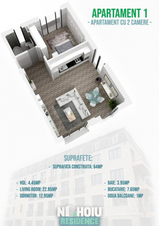 Va propunem un apartament de vanzare de 2 camere in Ansamblul Rezidentail Nehoiu Residence. Nehoiu Residence este un proiect imobiliar nou, in orasul Nehoiu, Buzau, dezvoltat pe 3 principii solide: Siguranta, Confort si Zero compromisuri. Fiind situat in zona centrala a orasului, Nehoiu Residence dispune de toate facilitatile de care ai nevoie: supermarket, scoala, banca, la doar cativa pasi, facand traiul mult mai confortabil. Pentru ca mediul urban este din ce in ce mai aglomerat, poluat si stresant, am vrut ca Nehoiu Residence sa fie oaza de relaxare in mijlocul naturii. Siguranta Construit dupa ultimele standarde europene in domeniu, in construirea cladirii au fost efectuate toate testele de siguranta si s-au folosit doar materiale de top, de catre constructori de top. Zero Compromisuri Totodata stim ca omul modern are nevoie de o viata tehnologizata asa ca nu am facut niciun compromis. Cladirea P+3E si mansarda vine cu toate facilitatie. Apartamentul 1 este compus din : 1- Camera de zi de 23.1 mp 2- Dormitor de 13 mp 3- Bucatarie de 7.6 mp 4- Baie de 3.9 mp 5- Hol de 4.5 mp 6-Balcon 0.5 mp Id intern: P3782
