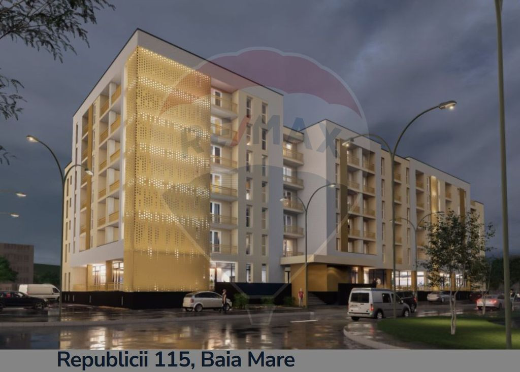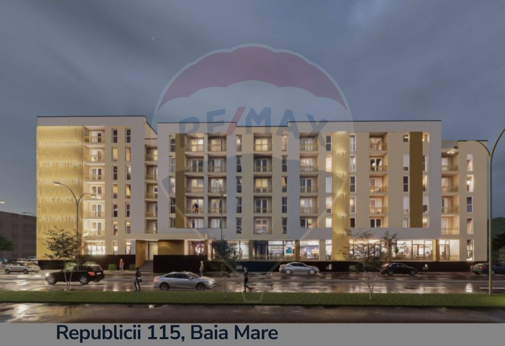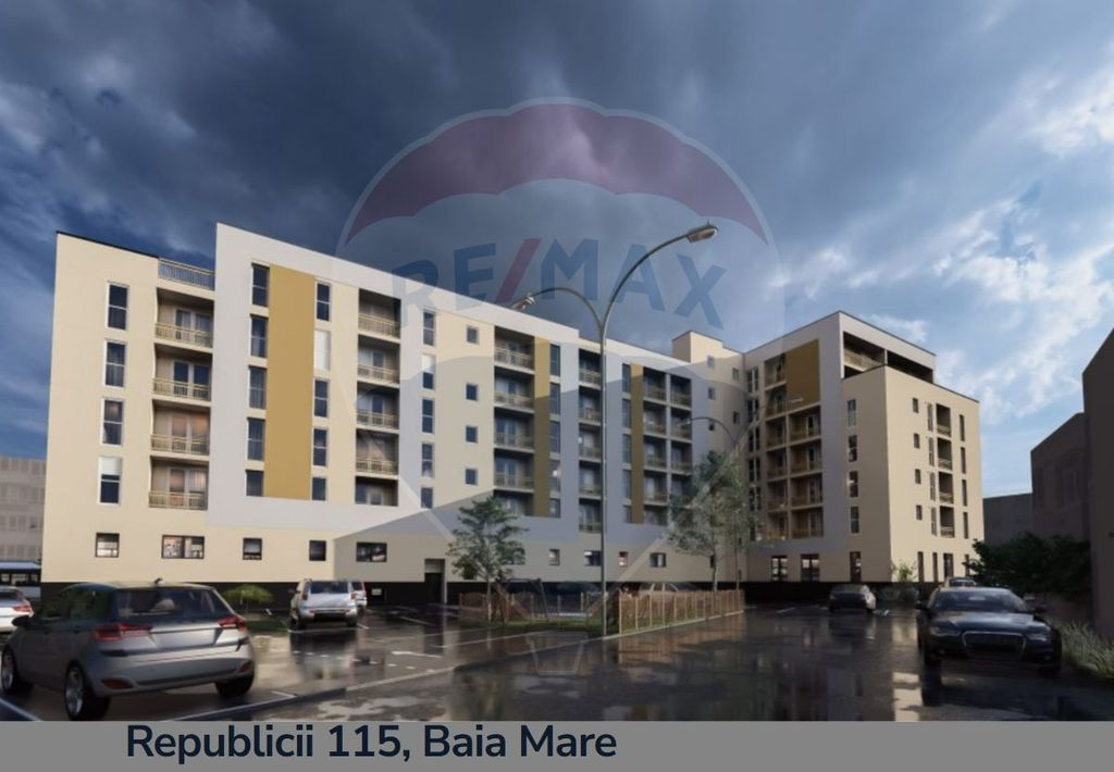 Vrei sa devii proprietarul unui apartament nou într-un complex rezidențial din Baia Mare? Vino sa descoperi apartamente cu 2, 3, 4 camere, cu preturi începând de la 51.100 Euro, fara TVA , situate pe strada BD REPUBLICII! Cu COMISION 0 % (ZERO) la cumpărător, RE/MAX Terra va oferă spre vânzare apartamente cu suprafețe cuprinse intre 48 mp si 117mp, plus balconul aferent! Apartamentele se predau la stadiul de semifinisat, cu instalație de încălzire prin pardoseala si centrala termica in condensare, geamuri termopan, ușa de intrare, sapa, instalație sanitara si instalația electrica trasa pe poziții, glet, izolație exterioara plus decorativa). Facilitați: -poziționare excelenta, in zona PARCULUI CENTRAL, Baia Mare! - acces ușor la mijloacele de transport in comun, restaurante, magazine, mall, grădinițe! -supraveghere video -acces privat -lift Prețul afișat nu include si costul finisajelor! Pentru realizarea finisajelor costul se va ridica la 150E/mp construit! Locuri de parcare : - exterioara la prețul de 3500 Euro - subterane la prețul de 8000 Euro Prețul nu include TVA 21%, care se va aplica conform normelor in vigoare. Termen finalizare: 31.12.2026!