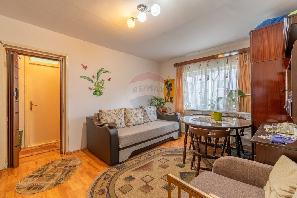 Se oferă spre vânzare un apartament cu 2 camere, situat pe strada Jean Jaurès, nr. 12/A, în cartierul Dâmbul Rotund, Cluj-Napoca. Apartamentul este semidecomandat, are o suprafață utilă de 43,07 mp și este amplasat la parter înalt, într-un bloc de apartamente construit în 1977, cu structură din beton. Proprietatea necesită renovare, fiind potrivită atât pentru locuire, cât și pentru investiție. Compartimentarea este următoarea: - dormitor - cameră de zi cu trecere - bucătărie - baie cu geam - hol - cămară Apartamentul dispune de centrală termică proprie pe gaz și ferestre termopan REHAU. Apartamentul se poate preda mobilat sau nemobilat, la cerere. Pentru mai multe informații sau pentru programarea unei vizionări, mă poți contacta. ------------------------------------------------------------------------------------------ Clasa energetica: B Consum total specific de energie primara: 144,0 Indicile de emisii echivalent CO_2: 28.2 Consum total specific de energie din surse regenerabile: 0