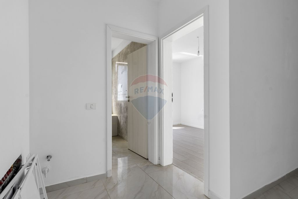 RE/MAX Dynamic vă propune spre vânzare un apartament cu 2 camere, decomandat, în bloc nou, zona Giroc. Apartamentul este situat la etajul 1, fiind compus din: hol, cameră de zi cu bucatarie deschisă, dormitor, baie, în suprafață totală utilă de 46.2 mp și terasă de 7.5 mp. Dotările apartamentului sunt: * centrală termică; * încălzire în pardoseală; * gresie, faianță; * tâmplărie PVC; * baie utilată. Proprietatea este poziționată într-o zonă de locuințe noi, la 10-13 minute de Spitalul Clinic Județean de Urgență "Pius Brînzeu" Timișoara, Sala Olimpia, Complexul Studențesc. Prețul de vănzare include TVA de 21% și un loc de parcare. Contactați-mă cu încredere pentru informații adiționale.