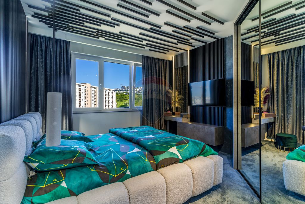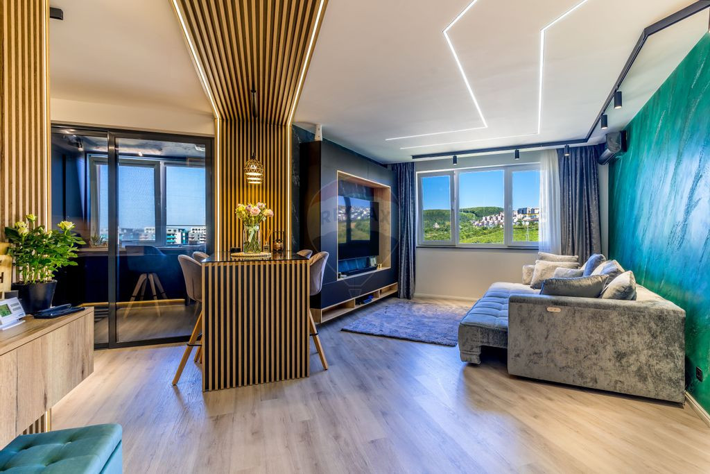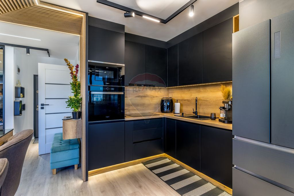 Vă propunem spre vânzare un apartament modern cu 2 camere, situat într-o construcție nouă pe str. Avram Iancu nr. 408J, la intrarea în Cluj-Napoca. Apartamentul, situat la etajul 6 al unui imobil recent construit cu 12 etaje și un nivel subteran, beneficiază de o suprafață utilă de 61,3 mp și este compartimentat inteligent în: dormitor, living cu bucătărie open space, baie și o exedra. Cu orientare Sud-Estică, apartamentul primește lumină naturală pe tot parcursul zilei. Construit cu materiale de calitate superioară, blocul este realizat din cărămidă de 30 cm, izolat termic cu polistiren de 15 cm și dispune de două lifturi. Interiorul apartamentului este finisat cu atenție la detalii, incluzând o centrală termică Ariston în condensare, cu randament superior, încălzire în pardoseală Rehau și parchet din compozit, recunoscut pentru stabilitatea și rezistența sa în timp, chiar și în condiții de umiditate și trafic ridicat, uși Porta Doors. Sistemele inteligente, cum ar fi întrerupătoarele cu touch, iluminatul LED, cu opțiuni pentru lumină caldă, rece sau diverse culori, aerul condiționat și mașina de spălat rufe cu funcție de uscare, sunt toate controlabile de pe telefonul mobil, asigurând un nivel ridicat de confort. Dotările moderne ale apartamentului includ un frigider Side by Side Haier, televizoare Samsung Smart, completând o experiență de locuit la standarde înalte. Zona de zi este inteligent delimitată de bucătărie prin riflaje personalizate, făcute la comandă și o exedră închisă, ventilată și separată de bucătărie cu o ușă de sticlă. Canapeaua de la Somproduct este extensibilă, comodă și elegantă, fiind acționată electric și controlabilă prin telecomandă. În plus, patul de la aceeași marcă oferă și spațiu pentru depozitare. Apartamentul a fost amenajat de un designer de interior, cu mobilier realizat la comandă, adaptat perfect stilul și particularitățile acestuia. Fiecare colț al apartamentului fiind optimizat pentru a oferi cât mai mult spații de depozitare și cât mai multă funcționalitate. Se poate achiziționa un loc de parcare, cu spațiu generos, în garajul subteran. Locația apartamentului adaugă un plus de valoare, fiind situat în proximitatea unor facilități precum magazine (Profi, Carrefour), farmacie, cabinet veterinar, salon de înfrumusețare, sală de fitness non-stop, stația de autobuz la doar 2 minute distanță, spațiu de joacă și de asemenea, viitorul spital regional de urgență Cluj. Accesul facil către oraș și centrul comercial Vivo completează lista de avantaje, făcând din acest apartament o alegere ideală pentru un stil de viață modern și confortabil. Pentru mai multe detalii sau pentru a programa o vizionare, vă rugăm să ne contactați. ------------------------------------------------------------------------------------------ Clasa energetica: B Consum total specific de energie primara: 137 Indicile de emisii echivalent CO_2: 39,54 Consum total specific de energie din surse regenerabile: 0