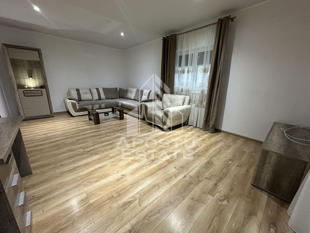 APOSTU ESTATE va propune spre vanzare un apartament cu 2 camere situat in Giroc la asfalt. Drumul de acces spre imobil este asfaltat. In apropiere sunt magazine si supermarket-uri precum Lidl, Profi, Mega Image, Penny, Scoala, gradinita și parc la o distanta de 3 minute, acces facil la mijloace de transport in comun. Apartamentul se vinde complet mobilat si utilat, precum se observa in imagini. Imobilul dispune de o suprafata de 60 mp si este situat la etajul 1, intr-un bloc intim cu doar 4 apartamente. Compartimentare: - hol acces. - bucatarie inchisa. - dormitor. - living. - baie cu geam si cada. - terasa. Detalii tehnice: - constructie realizata in anul 2016 din caramida Porotherm de 25 cm. - exterior izolat cu polistiren de 10 cm eps 80. - pereti despartitori complet din caramida (fara rigips) tencuiti mecanizat finisati cu glet si vopsea lavabila. - geamuri termopan cu 3 sticle pentru izolare fonica si termica superioara, foarte mari si luminoase dotate cu rulori. - centrala proprie pe gaz, incalzire prin calorifere. - 2 aparate pentru aer conditionat, atat in dormitor cat si in living. - aparataje modulare Gewis. - usa acces securizata, usi interioare Porta Doors.. - electrocasnice noi, in stare perfecta de functionare. (frigider, masina de spalat rufe, masina de spalat vase, aragaz, cuptor, hota) - mobilier de calitate inalta, realizat pe comanda pe toata suprafata apartamentului. - 1 loc de parcare in cf. Utilitati complete: curent, apa de la retea, canalizare, gaz. Pentru mai multe detalii nu ezitati sa ne contactati! Acceptam orice fel de credit bancar. Oferim consultanta si solutii financiare prin colaboratorii nostri pentru a obtine cel mai avantajos credit Ipotecar sau Noua Casa. Va asteptam cu drag la o vizionare chiar astazi! CP2793454