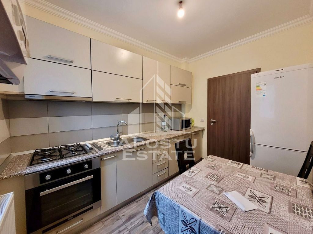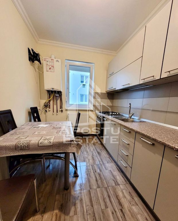 APOSTU ESTATE vă propune spre închiriere un apartament cu 2 camere, decomandat, ideal pentru cupluri, o familie la început de drum sau persoane care doresc un spațiu confortabil. Suprafață utilă: 54mp Compartimentare eficientă: Hol de acces Bucătărie inchisa, complet mobilată și utilată, cu loc de luat masa Baie cu cada și geam pentru ventilație naturală Confort și facilități: Centrala proprie Loc de parcare inclus in pret Apartamentul este complet mobilat si utilat. Localizare: Giroc, locatie bine conectata la oraș Ideal pentru: Cupluri Familie Preț chirie: 400€ Programează o vizionare! ID intern: CP2769705
