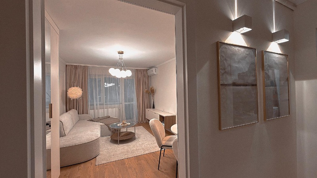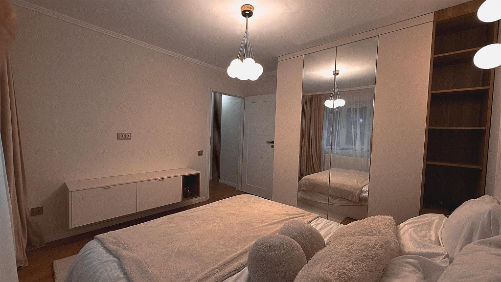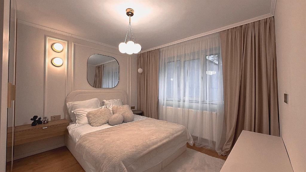 Poze reale, PF: Apartament Wabi Sabi – 2 camere decomandate, finisat si mobilat luxury, la cheie Mobilierul din bucatarie va fi gata intr-o saptamana. Locatie excelenta: vis-a-vis de Academia de Muzica “Gheorghe Dima” strada Bucium. In fata blocului este statia de autobuz pentru urmatoarele linii: 9, 24, 29, 43, 43B, 43P, 52, M21, M22, M24, M25. Cu autobuzul faci pana in centru mai putin de 15 minute, cu masina 10, cu bicicleta (pe pista) poate si mai putin! ⸻ Detalii despre apartament Situat la parterul inalt al unui bloc reabilitat termic, cu fatada moderna, lift nou, interfon si supraveghere video. Geamurile se afla la 2 metri de la sol, iar sub apartament sunt boxele de depozitare, ceea ce ofera un plus de izolatie si siguranta. Suprafata totala: 52 mp Suprafata utila: 48 mp + balcon inchis cu PVC Compartimentare: • Hol de intrare • Living generos cu acces la balcon • Dormitor luminos • Bucatarie spatioasa • Baie cu geam Spatiile verzi din jurul blocului sunt ingrijite si ofera un cadru placut pentru relaxare. ⸻ Dotari si finisaje Apartamentul este complet renovat, cu instalatii noi (termica si electrica) si materiale de cea mai buna calitate. • Centrala termica Ariston Class One S cu senzor de gaz si garantie 5 ani • Instalatie termica noua – tevi Pexal Henco, garantie 20 ani • Instalatie electrica complet refacuta, cu trasee separate pentru consumatorii mari • Aer conditionat Tesla Inverter – ofera atat caldura, cat si racire instant • Placa de beton izolata termic intre boxe si apartament ⸻ Bucatarie complet utilata Dotata cu electrocasnice moderne: • Masina de spalat vase • Masina de spalat rufe • Cuptor electric • Plita pe gaz • Frigider ⸻ Finisaje si mobilier premium Tot mobilierul a fost realizat pe comanda, pentru a crea un design unitar si armonios. • Parchet Egger (Germania) – garantie 10 ani • Gresie si faianta Tubadzin (Polonia, gama premium) • Baterii Grohe • Corpuri de iluminat LED • Pat si canapea comandate din Polonia • Prize si întrerupatoare cu rame de sticla • Infrastructura CATV si internet • Glafuri granit la geamuri • Usi pe comanda Polonia MDF *Bonus: boxa de depozitare la subsol (4mp) Pentru detalii sau vizionare, te invit sa ma contactezi!