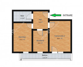Separat de suprafata utila apartamentul beneficiaza si de un balcon de 6.00 mp in care accesul se face din camera de zi.