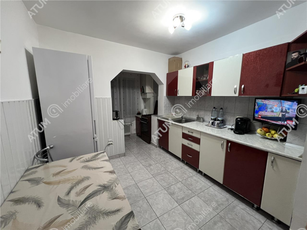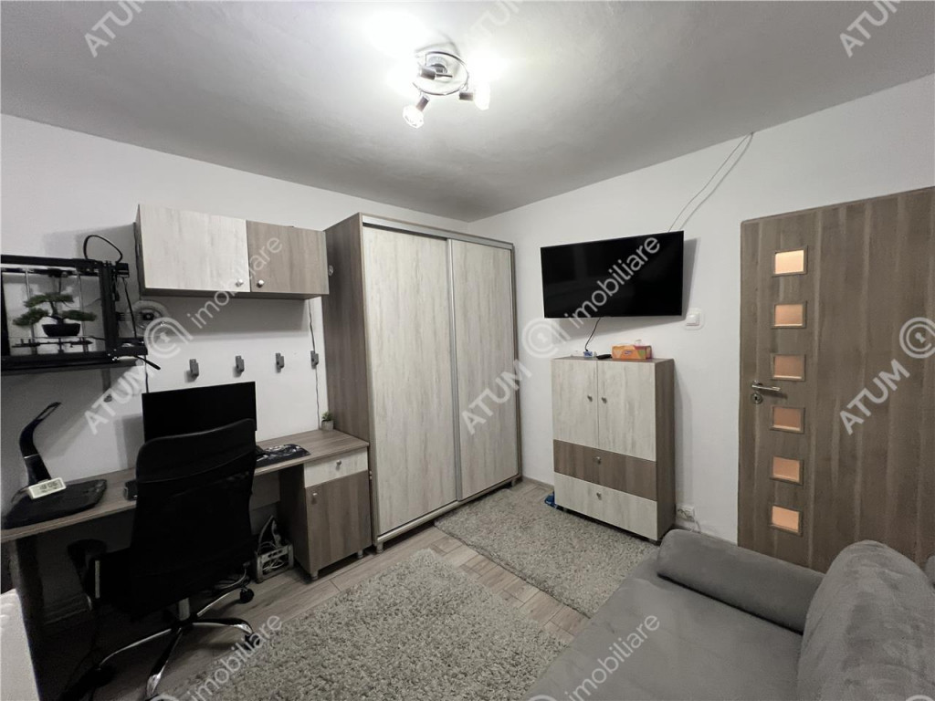 De vanzare apartament cu 2 camere decomandate in suprafata totala de 56,40 mp, situat la etaj intermediar cu vedere mixta, localizat in zona Terezian din Sibiu in apropierea de Delgaz Grid. Apartamentul este pozitionat la etajul intermediar 4 din 5 al unui imobil edificat in jurul anului 1980 cu doar 3 apartamente pe palier. In anul 2025 blocul a fost izolat termic la exterior cu vata bazaltica Rockwool cu grosimea de 15 cm, casa scarii este frumos amenajata si ingrijita, aceasta fiind renovata in anul 2024. Suprafata utila a apartamentului este de 47 mp, acesta fiind compus dintr-un hol de acces amenajat cu pantofar, cuier si un dressing, camera de zi unde poate fi amenajata si o zona de dinning, dormitorul, baia dotata cu geam de aerisire si cada, bucataria cu loc de luat masa, iar balconul de 3 mp fiind loggie acesta este inchis in tamplarie PVC si face parte din bucatarie, in balcon fiind amenajata o camara si o zona de gatit. Separat de suprafata utila a locuintei aceasta detine o pivnita uscata si ventilata natural de 6.00 mp inscrisa in CF. Parcarea se realizeaza pe locurile de parcare aflate atat in fata blocului cat si in proximitatea acestuia. Din punct de vedere al finisajelor si al dotarilor apartamentul dispune de: usa metalica de acces, centrala termica cu calorifere din fonta pentru pastrarea caldurii o perioada mai indelungata pe perioada iernii, instalatie termica din cupru, aer conditionat Daikin cu 2 unitati interioare montate in camera de zi si dormitor, usi interioare din lemn, pardoseli placate cu parchet laminat in camere si gresie in bucatarie, baie si hol iar peretii baii find placati cu faianta. Predarea apartamentului se face partial mobilat si utilat cu mobilier de bucatarie realizat pe comanda si locul de luat masa, camera de zi care include canapele si mobilier specific cu multiple spatii de depozitare realizat din lemn masiv, baia complet amanejata cu obiecte sanitare si mobilierul specific. Valoarea de achizitie este de 102.000 euro negociabil, acesta poate fi achizitionat si prin accesarea unui credit bancar. ID intern: 3243.