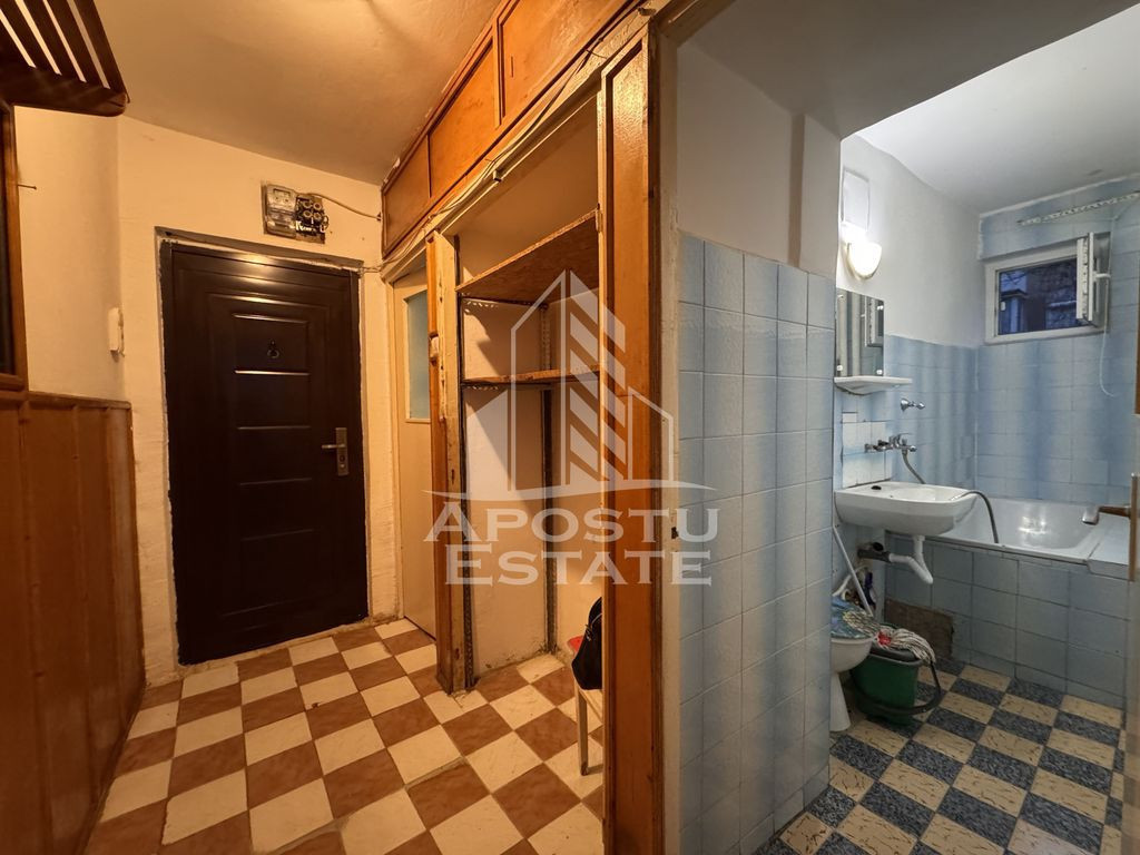 APOSTU ESTATE va propune spre vanzare un apartament cu 2 camere semidecomandate situat la etajul 1/4, in zona Blascovici. Apartamentul are o suprafata utila de 40mp si este compartimentat astfel: - 1 dormitor - 1 sufragerie - 1 bucatarie - 1 baie cu geam Confortul termic se realizeaza prin intermediul termoficarii Colterm, insa exista posibilitatea montarii centralei termice proprii. Vecinatati: - Parc - Farmacii - Supermarket Lidl Auchan Kaufland Carrefour Profi - Centru Timisoara - Mijloace de transport in comun Nu ezitati sa ne contactati pentru stabilirea unei vizionari sau alte detalii suplimentare. ID intern: CP1904730