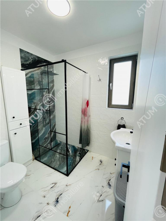 Va propunem spre vanzare un apartament cu 2 camere, situat icirc;n zona Doamna Stanca, Sibiu, la etajul 1 al unui imobil nou, construit icirc;n anu 2023. Blocul beneficiaza de locuri de parcare private si este amplasat intr-o locatie excelenta, icirc;n imediata apropiere a strazii Rahovei, oferind acces facil catre zonele de interes. Locuinta are suprafata utila de 43 mp si este compus dintr-un living generos de 16.10 mp, bucatarie de 4.75 mp, dormitor matrimonial de 13.00 mp, o baie dotata cu cabina de dus de 4.28 mp, un hol de 3.40 mp cu spatiu pentru pantofar si cuier. Amenajarile interioare sunt moderne si de calitate, realizate in 2023 imediat dupa finalizarea constructiei. Apartamentul se prezinta impecabil, fiind intretinut cu responsabilitate. Finisajele includ parchet laminat de 10 mm, usi de interior Naturen, obiecte sanitare suspendate si pereti zugraviti in lavabila alba.Bucataria este complet mobilata, cu mobilier realizat la comanda din MDF infoliat si dotata cu electrocasnice moderne, dintre care o parte sunt incorporate (cuptor electric, plita pe curent, hota, cuptor cu microunde, frigider, masina de spalat rufe). Locuinta dispune de dotari moderne precum usa metalica de acces antiefractie, centrala termica de apartament pe gaz cu termostat wireless si calorifere de otel, tamplarie PVC cu geam termopan si interfon. Apartamentul este ideal atat pentru locuinta proprie cat si pentru investitie. Valoarea de achizitie a apartamentului este de 88.000 euro negociabil. Se poate achizitiona si prin credit bancar. ID intern: 2630.