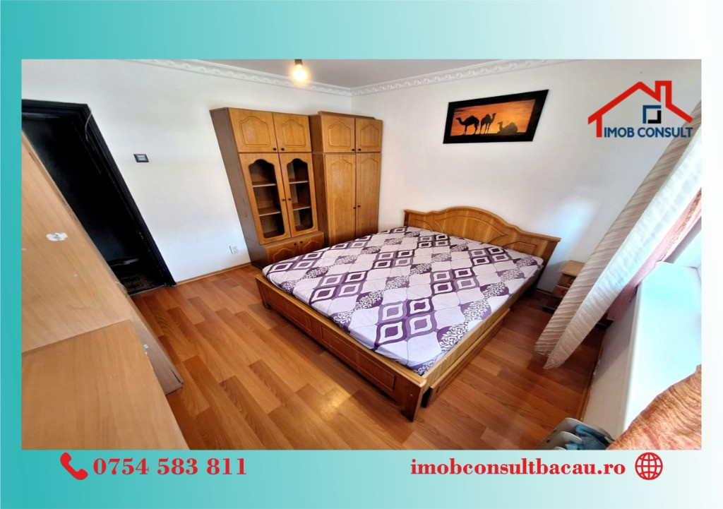 Imob Consult Bacau vă propune spre închiriere un apartament cu două camere, decomandat, situat în cartierul Nord, într-o zonă liniștită și bine conectată la punctele de interes ale orașului. Imobilul este amplasat la etajul 2 al unui bloc cu 4 niveluri, construit în anul 1985. Apartamentul beneficiază de o compartimentare practică, oferind confort și funcționalitate, fiind dotat cu balcon și tâmplărie PVC cu geam termopan, asigurând un bun nivel de izolare termică și fonică. Se închiriază complet mobilat și utilat, fiind pregătit pentru mutare imediată, ideal pentru persoane singure sau cupluri. Pentru vizionări și relații suplimentare, contactează-ne: • Cosmin: 0754 583 811; • Corina: 0740 288 297, sau te așteptăm la sediul agenției noastre Imob Consult Bacău, situat pe strada Banca Națională nr. 27, la intersecția cu str. Neagoe Vodă, lângă Irish Pub.