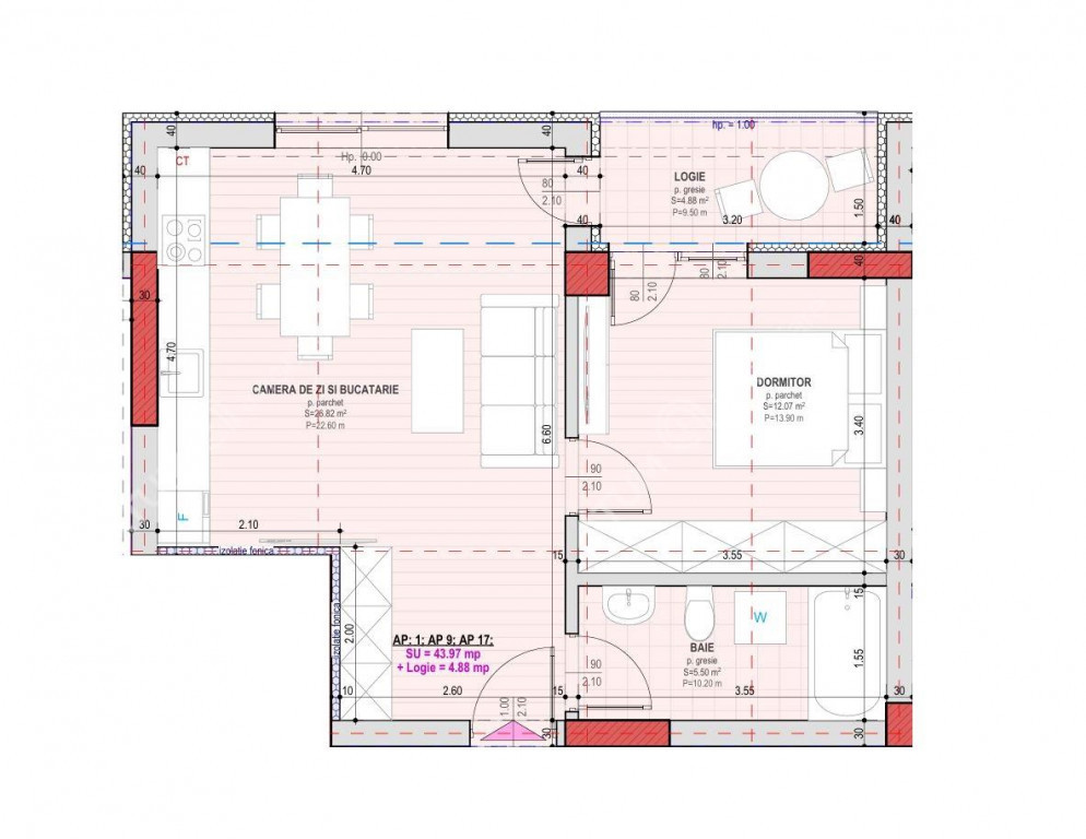 Va propunem spre vanzare un apartament modern cu 2 camere decomandate, pozitionat la etajul intermediar 1 al unui imobil nou din Selimbar, situat pe strada Pictor Brana, ce face parte dintr-un ansamblu rezidential bine organizat, ce dispune de parcari private, loc de joaca pentru copii, spatii verzi amenajate, zone comerciale si infrastructura completa cu strazi si trotuare asfaltate, complexul fiind alcatuit din 9 cladiri cu regim redus de inaltime P 3E. Apartamentul dispune de o suprafata utila de 44 mp si este compartimentat eficient in camera de zi cu bucatarie open-space in suprafata de 26.82 mp, un dormitor matrimonial de 12,07 mp ce permite amenajarea unui dressing generos, o baie spatioasa de 5.53 mp si un hol generos cu spatiu pentru pantofar si cuier. Separat de suprafata utila, apartamentul dispune si de un balcon tip loggie in suprafata de 4.88 mp in care accesul se face atat din dormitor cat si din bucatarie. In pretul de achizitie este inculs si un loc privat de parcare inscriptionat si delimitat. Apartamentul este la stadiul de cheie, fiind echipat cu usa metalica antiefractie placata cu panou MDF, centrala termica proprie Vaillant Ecotec de 24 kW cu incalzire in pardoseala marca Purmo si termostatare individuala pentru fiecare incapere, tamplarie PVC Kommerling cu 7 camere si geam tripan, instalatie electrica din cupru cu tablou general si sigurante separate, instalatii complete pentru utilitati cu contorizare individuala, interfon si instalatie pregatita pentru aer conditionat. Finisajele includ pereti tencuiti, gletuiti si zugraviti in lavabila, pardoseli din parchet SPC de 10 mm in camere si hol, gresie in bucatarie si bai, pereti placati cu faianta in bai, obiecte sanitare montate, usi interioare Naturen si prize si intrerupatoare Schneider. Spatiile comune ale imobilului sunt realizate la standarde moderne, casa scarii fiind finisata cu gresie antiderapanta, balustrade metalice si iluminat cu senzori, iar exteriorul complexului este complet amenajat cu alei pietonale, zone verzi cu gazon si arbusti decorativi si acces auto facil. In pretul de achizitie este inclus un loc de parcare privat amplasat in fata imobilului, iar proiectul ofera un cadru organizat si aerisit, cu distante generoase intre cladiri si acces rapid catre punctele de interes din oras. Pretul de vanzare este de 105.500 euro cu TVA de 21% inclus, iar achizitia se poate realiza si prin credit bancar cu un avans minim de 15%. ID intern: 3249.