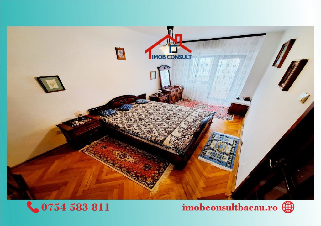 Imob Consult Bacau vă propune spre închiriere un apartament cu 2 camere, cu compartimentare decomandată, situat la etajul 4 al unui imobil cu 9 etaje construit in anul 1995, amplasat într-o zonă foarte bine cotată, în apropierea Parcului Catedralei. Locuința dispune de un balcon închis, cu suprafață generoasă, și se închiriază complet mobilată și utilată, fiind gata pentru mutare imediată. Confortul termic este asigurat de centrală termică proprie, iar pentru sezonul cald apartamentul este dotat cu instalație de aer condiționat. Tâmplăria PVC cu geam termopan contribuie la un nivel ridicat de izolare. Proprietatea este ideală pentru cei care își doresc o locuință funcțională, într-o zonă centrală, cu acces rapid către parcuri, instituții și mijloace de transport. Pentru vizionări și relații suplimentare, contactează-ne: • Cosmin: 0754 583 811; • Corina: 0740 288 297, sau te așteptăm la sediul agenției noastre Imob Consult Bacău, situat pe strada Banca Națională nr. 27, la intersecția cu str. Neagoe Vodă, lângă Irish Pub.