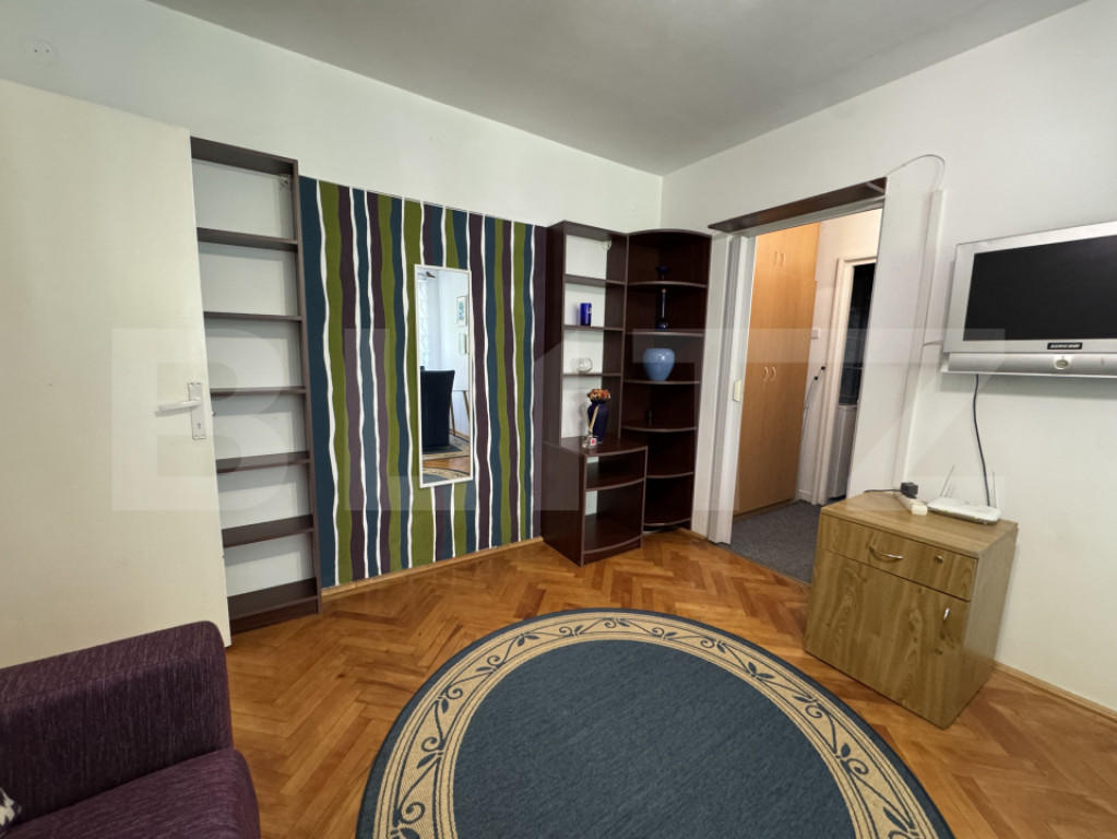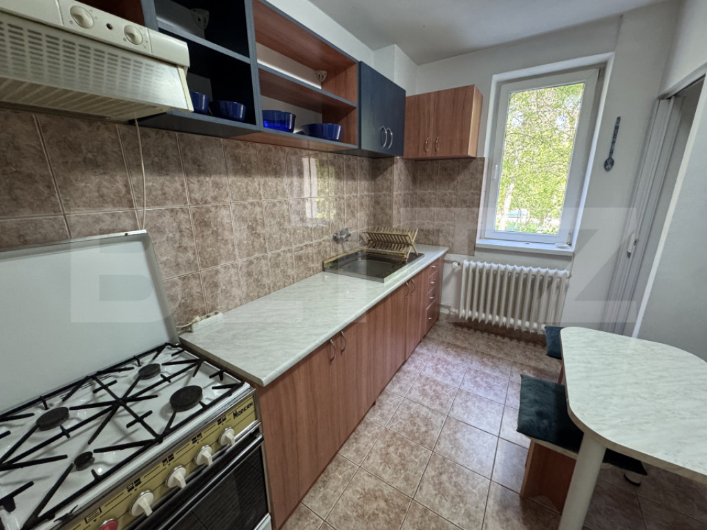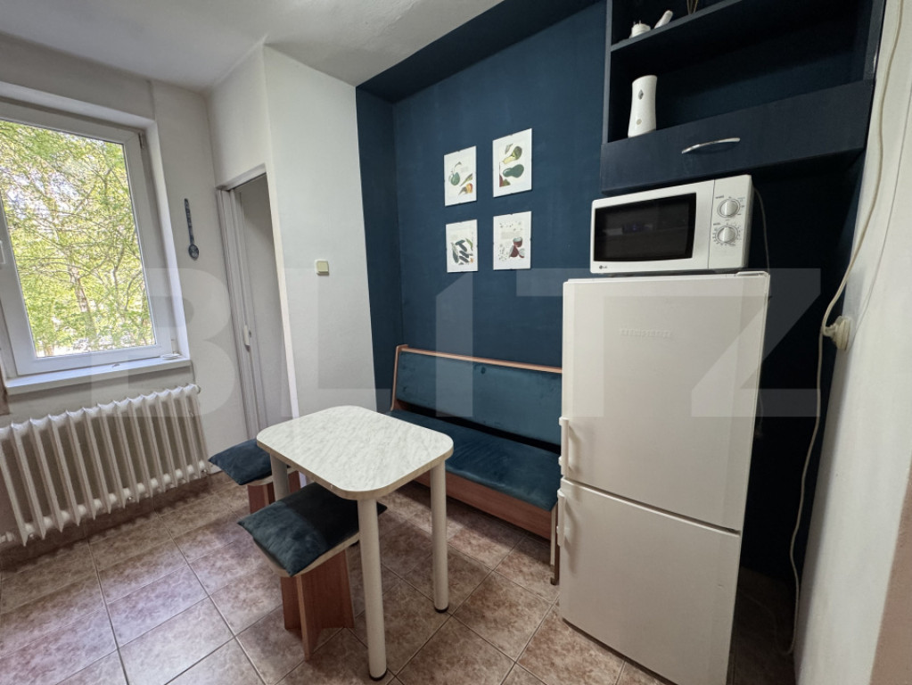 Blitz propune spre închiriere un apartament cu două camere situat în cartierul Gheorgheni, într-o zonă înverzită și liniștită, ferită de trafic, la etajul 1 al unui imobil cu 4 etaje. Apartamentul are o suprafață de 48 mp și este compartimentat eficient, dispunând de un living și o bucătărie separate, un dormitor și un balcon închis. Bucătăria este complet mobilată și utilată, oferind un spațiu practic pentru activitățile zilnice, iar locuința beneficiază de multiple spații de depozitare și rafturi, ideale pentru organizare. Proprietatea se află în apropierea mijloacelor de transport în comun, dar și a școlilor, magazinelor, spațiilor comerciale, băncilor și parcurilor, oferind acces facil către toate punctele de interes. Apartamentul dispune de centrală termică pe imobil, modernizată si reabilitată recent, având costuri reduse la întreținere, fiind o alegere potrivită pentru un stil de viață confortabil. Pentru programarea unei vizite sau pentru mai multe detalii, nu ezita să ne contactezi! Cod ofertă / ID BLITZ: P170281 Id intern: P170281