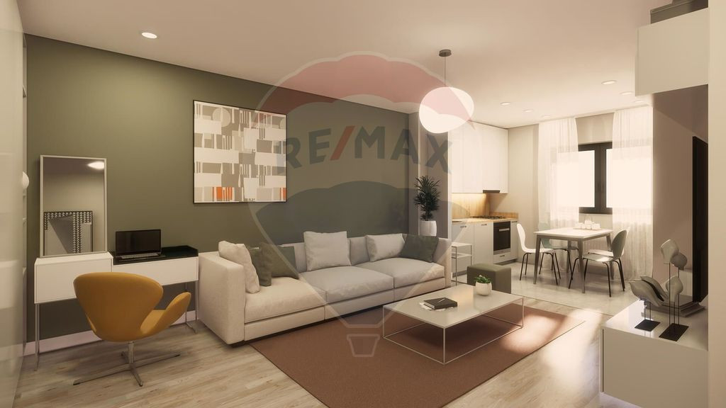 Apartament modern, 2 camere, 53.10 mp, balcon generos – Finisaje premium Descoperă acest apartament cochet, ideal pentru confortul zilnic! Situat într-o zonă bine conectată, acest spațiu oferă un design funcțional și finisaje de calitate superioară. Caracteristici principale: - Suprafață utilă: 43,00 mp - Balcon generos: 10,10 mp - Suprafață construită: 56,58 mp - Compartimentare inteligentă: Living + Bucătărie: 25,80 mp, Dormitor: 12,60 mp, Baie: 4,60 mp Dotări și finisaje premium: - Tâmplărie PVC GEALAN , geam termoizolant, culoare gri antracit. - Ușă de intrare Pinum Blindo 2 . - Uși interioare Pinum SARA H – MDF. - Obiecte sanitare Ideal Standard , calitate superioară pentru confort maxim. Informații suplimentare: Imaginile sunt cu titlu de prezentare. Apartamentele se vând nemobilate și neutilate. Elementele de decor și design sunt folosite exclusiv pentru evidențierea spațiului locativ și nu fac parte din ofertă Prețul este exprimat în euro, la care se adaugă TVA conform legislației în vigoare Un apartament ideal pentru locuit sau investiție! Contactează-mă pentru detalii și vizionare!