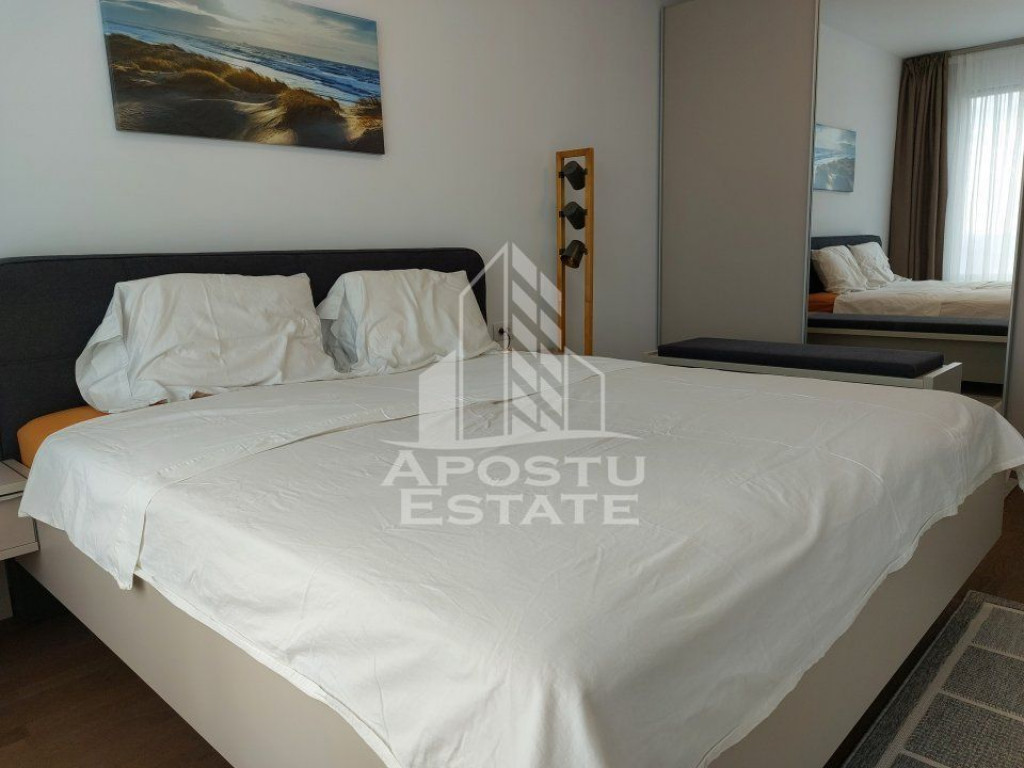 APOSTU ESTATE vă propune spre închiriere un apartament spațios și elegant, cu 2 camere, situat într-o zonă liniștită și bine conectată din Timisoara, ideal pentru familii sau persoane care doresc un spațiu generos și confortabil. Suprafață utilă: 54 mp Compartimentare eficientă: Hol de acces generos Bucătărie complet mobilată și utilată, cu loc de luat masa Living luminos și spațios Dormitor matrimonial mobilat Baie principală cu cadă Confort și facilități: Centrală termică proprie pe gaz Aer condiționat Apartamentul este complet mobilat și utilat Localizare: Zona Take Ionescu – liniște, acces facil spre oraș, în apropiere de magazine și mijloace de transport în comun. Ideal pentru: Familii Cupluri Studenti Disponibil din 01/10/2025 Preț chirie: [650 euro] Programează o vizionare! ID intern: CP2639147