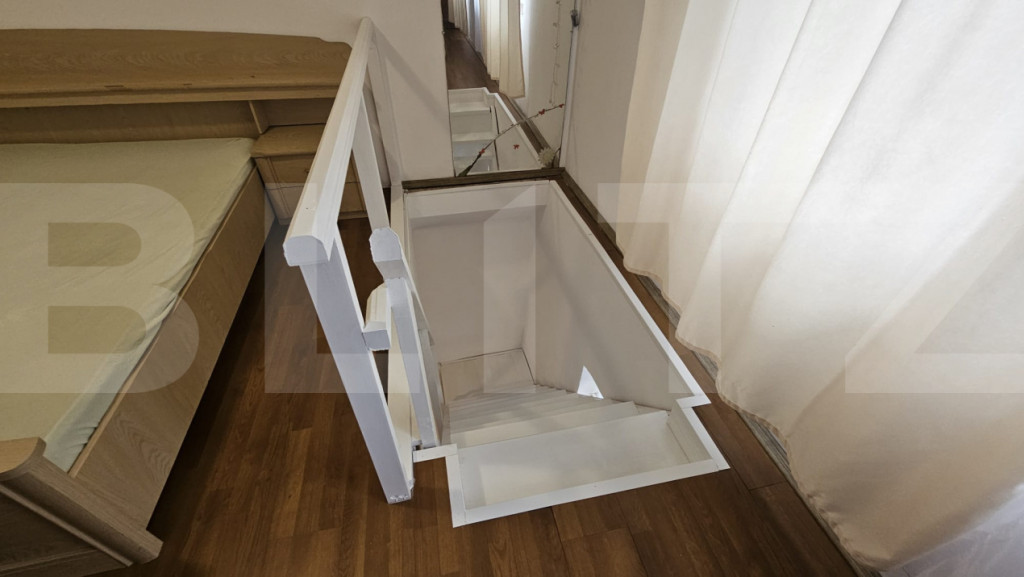 Blitz vă propune un apartament foarte spațios, dispus pe două niveluri cu scară interioară, într-o zonă excelentă, imediat lângă Iuliu Maniu. Se află la parter, într-o curte comună liniștită, unde sunt foarte puțini proprietari – perfect pentru cei care își doresc intimitate și liniște în oraș. Jos găsești o sufragerie confortabilă, o bucătărie practică și o baie, iar la etaj, un dormitor foarte mare cu spațiu generos și a doua baie. În acte sunt trecuți aproximativ 30 mp și pod, dar podul este acum complet mansardat, oferind un dormitor unic ca atmosferă. Beneficiezi și de o boxă trecută în CF pentru depozitare suplimentară. Poziția excelentă aduce aproape toate beneficiile urbane: centre comerciale, săli de sport, cafenele, restaurante, școli, grădinițe, universități și transport în comun. Un spațiu cu personalitate, modernizat integral, unde fiecare detaliu a fost gândit pentru confortul traiului de zi cu zi în inima orașului. Cod ofertă / ID BLITZ: P153305 Id intern: P153305