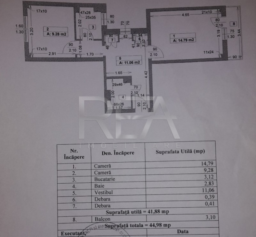 R.E.A Imobiliare vă invită să vizionați un apartament cu 2 camere de vânzare la prețul de 86000 de euro la 700 de metri de parcul Titanii,ceea ce înseamnă că în maximum 9 minute ajungeți în spațiul amenajat pentru timpul dumneavoastră liber. Imobilul este situat la etajul 7 din 10 al blocului construit în anul 1977și se mai învecinează cu:grădinița nr. 231 la 37 de metri de probabil noua dumneavoastră adresă de domiciliu,adică,vă puteți lăsa copilul în grija educatoarei într-un minut de mers pe jos, Mega Image CODRII NEAMȚULUI la estimativ 130 de metri de clădirea cu apartamente,Pandora Medical Center și notarul public Birou de Mediator Albu Cristian la numai 200 de metri de scara de bloc pe care le puteți transforma în 3 minute pietonale,grădinița Happy Tree la 300 de metri de zona rezidențială,cinematograful Cineplexx Titan la 400 de metri de noua dumneavoastră adresă din buletinsau în 6 minute veți reuțo să ajungeți la casa de bilete pentru a alege ce film merită văzut, școala Gimnazială nr. 200 și restaurantul GEDI Titan este poziționate la doar 450 de metri de locuință sau distanța poate fi parcursă în aproximativ 6 minute,dacă copilul sau copiii dumneavoastră vor să ajungă în clasa unității de învățământ postliceală sau ați decis să savurați împreună cu familia și prietenii cele mai bune mâncăruri din împrejurimi,sala de fitness World Class la 500 de metri de cartier sau distsanța poate fi parcursă în 7 minute pietonale,restaurantul de tip fast-food KFC Auchan Titanf la 550 de metri de bloc sau în 8 minute reușiți să comandați meniul dumneavoastră favorit, frizeria pentru animalele de companie Pawsome Studio la 550 de metri de viitorii dumneavoastră vecini pe care îi puteți converti într-o plimbare de 8 minute cronometrate,dacă alegeți să mergeți pe jos,magazinul de haine și încălțăminte New Yorker și centrul de inspecție auto Cars ITP la 400 de metri de bloc sau o să ajungeți în 6 minute,indiferent la ce destinație trebuie să ajungeți,clinica ABC Eurodent la 650 de metri de clădirea cu apartamente pe care îi parcurgeți în 9 minute,clinica veterinară Tazy Vet la 800 de metri de locație,deci o să ajungeți în 9 minute la recepția centrului medical pentru patrupede și restaurantul Alba este notat pe Google Maps la 900 de metri de construcția cu locuințe sau în 13 minute de mers pe jos aveți posibiliatea de a comanda cele mai bune preparate culinare din apropiere . Propietarii vând apartamentul complet mobilat și utilat,iar variantele de plată acceptate sunt creditul ipotecar și transferul bancar. Vânzătorii vor să primească 4000 de euro avans de la cumpărători pentru completarea și semnarea promisiunii contractului de vânzare cumpărare. Locuința are o suprafață totală de 44,98 mp și sunt împărțiți astfel:sufrageria ocupă 14,79 mp,dormitorul se întinde pe 9,28 mp,bucătăria nu depășește 3,12 mp,baia are 2,83 mp,un vestibul care măsoară 11,06 mp,o debara de 0,39 mp și a doua debara de 0,41 mp și un balcon de 3,10 mp. Dacă vă interesează anunțul vă rog să programați vizionarea la numerele de telefon afișate pe pagina de internet a firmei reaimobiliare.ro.Agentul imobiliar care promovează acest apartament o să vă apeleze în cel mai scurt timp posibil. P8473 Id intern: P8473