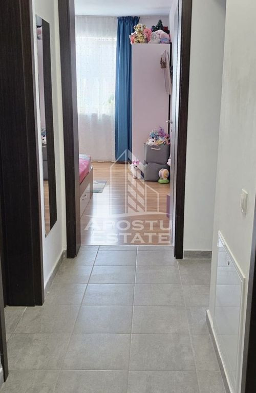 APOSTU ESTATE va propune spre vanzare un apartament cu 2 camere situat in Giroc - Chisoda. Drumul de acces spre imobil este asfaltat. In apropiere sunt magazine si supermarket-uri precum Lidl, Profi, Mega Image, Penny, Scoala, gradinita și parc la o distanta de 3 - 5 minute, acces facil la mijloace de transport in comun. Imobilul dispune de o suprafata de 54 mp utili si este situat la parter. Apartamentul se vinde complet mobilat si utilat precum se observa in imagini. Compartimentare: - hol acces. - dormitor. - bucatarie inchisa. - living. - baie cu cada. Detalii tehnice: - constructie realizata in anul 2018 din caramida Porotherm de 25 cm. - exterior izolat cu polistiren de 10 cm eps 80. - pereti despartitori complet din caramida (fara rigips) tencuiti mecanizat finisati cu glet si vopsea lavabila. - geamuri termopan, izolare fonica si termica superioara, foarte mari si luminoase. - aparataje modulare Gewis. - centrala proprie pe gaz, sistem eficient de incalzire prin pardoseala. - usa acces securizata, usi interioare Porta Doors. - aparat pentru aer conditionat. - mobilier de bucatarie de calitate inalta, realizat pe comanda. - sistem de alarma. - sistem de supraveghere video. - 1 loc de parcare in cf. Utilitati complete: curent, apa de la retea, canalizare, gaz. Pentru mai multe detalii nu ezitati sa ne contactati! Acceptam orice fel de credit bancar. Oferim consultanta si solutii financiare prin colaboratorii nostri pentru a obtine cel mai avantajos credit Ipotecar sau Noua Casa. Va asteptam cu drag la o vizionare chiar astazi! CP2806847