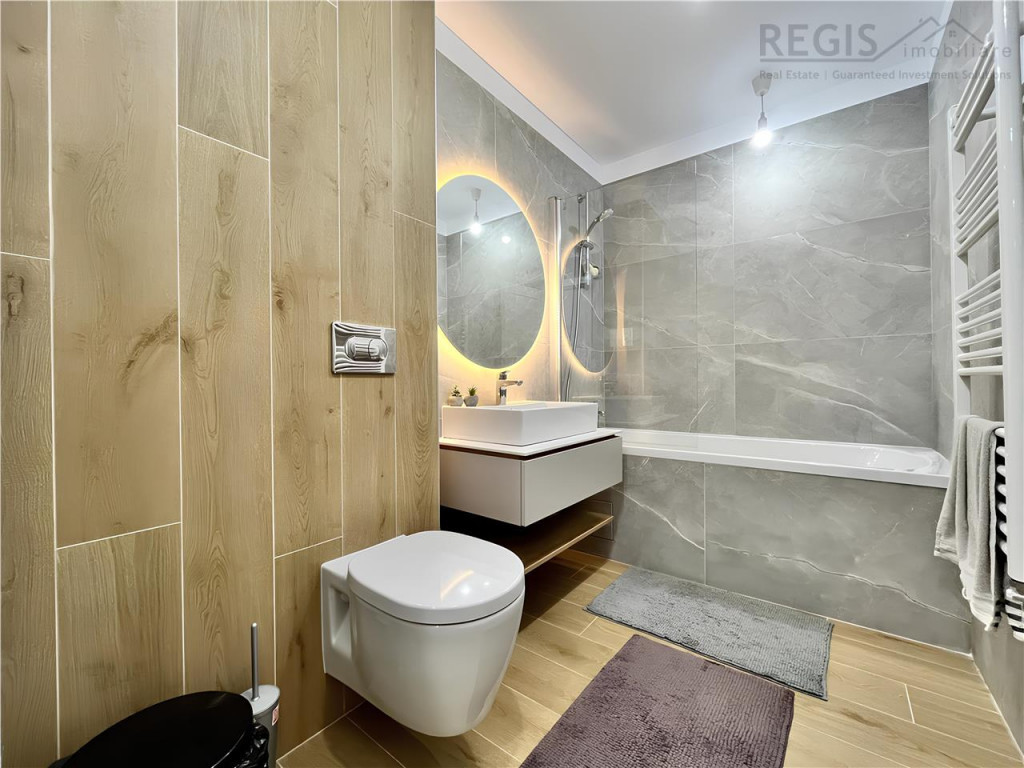 ID intern: 6437 Pentru orice contraoferta, nu ezitati sa ma contactati! REGIS Imobiliare va propune spre cumparare un apartament in Urban Plaza. Acesta se afla pe str. Carpatilor 93 bloc 21 cu vedere libera spre munti. (pozele 3 si 4) In complex se construieste prima gradinita din Astra dupa 1989. Dezvoltatorul intentioneaza sa mai construiasca 2 turnuri de 70 m cu 20 etaje, un centru wellness cu piscina, spa si sala de fitness. Detalii: - Suprafata 51,6 mp utili 8,5 mp balcon - 2 camere - Etajul 7 din 10 - Centrala proprie cu incalzire in pardoseala - Orientare SV (soare pe tot timpul zilei) Compartimentare open space: (poza 14 schita) - living cu bucatarie, dormitor, hol, camera depozitare, baie si balcon Utilat cu: - plita, cuptor, hota, frigider, masina de spalat rufe, masina de spalat vase, TV si aer conditionat Detalii imobil: - Finalizat in 2023 cu structura din beton armat si ziduri de caramida - Izolat termic cu vata bazaltica - 2 lifturi silentioase Zona: - Statie de autobuz (500 m) - La Doi Pasi, cafenea, frizerie, salon de infrumusetare si clinica medicala (in complex) - Supermarket Plai, Lidl, Kaufland si Carrefour (1 km - 1,7 km) - Zona comerciala cu Media Galaxy, Brico Depot, Pet Store, Noriel, JYSK, DM, Romstal si Leroy Merlin (1,7 km) - Sala de sport Enjoy Fitness (in fata complexului) - Parcul Henri Berthelot (in complex) - Easy Box (650 m) Comisionul agentiei este 2% TVA din valoarea pretului tranzactionat. Va astept cu drag la vizionare!
