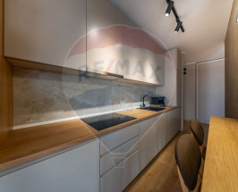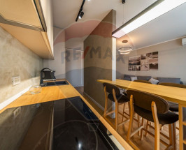 Apartamentul se remarcă printr-un design modern și rafinat, realizat cu ajutorul unui designer de interior, care a combinat armonios funcționalitatea cu estetica. Finisajele sunt de înaltă calitate, iar mobilierul este realizat pe comandă, pentru un confort deplin.