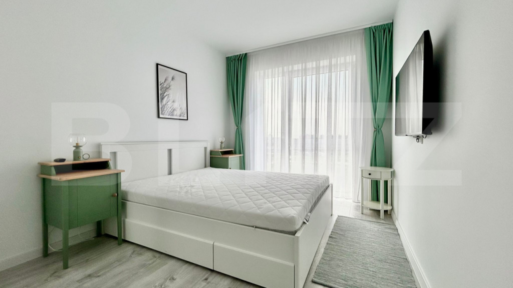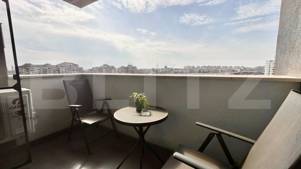 Blitz vă propune spre închiriere apartament cu 2 camere, model decomandat, situat în Oradea în ansamblul rezidențial Prima Urbană. Imobilul este poziționat la etajul 6 dintr-un regim de înălțime de 8 niveluri, blocul fiind dotat cu două ascensoare de ultimă generație. Locuința are o dispunere geografică spre Sud-Vest, beneficiind de iluminat natural optim. Compartimentare: Hol de acces, bucătărie, baie, dormitor matrimonial, living și balcon deschis. Imobilul se află la prima utilizare, prezentând finisaje din gama premium. Sisteme de climatizare și utilități: Încălzire în pardoseală conectată la rețeaua municipală, susținută de centrala termică a imobilului. Control smart al temperaturii prin termostat cu acces de la distanță. Sistem de aer condiționat. Conexiune internet de mare viteză și cablu TV (Digi). Supraveghere acces prin videointerfon. Bucătărie complet echipată: mașină de spălat vase, plită electrică, cuptor electric încorporabil, hotă, combină frigorifică, espressor cafea. Zonă de îngrijire textile: mașină de spălat rufe și uscător de haine separat. Multimedia: 2 televizoare Smart LG. Mobilier complet, realizat la comandă pentru optimizarea spațiului. Loc de parcare: Proprietatea include un loc de parcare suprateran privat, situat în perimetrul cu acces controlat (barieră acționată prin telecomandă). Cod ofertă / ID BLITZ: P168872 Id intern: P168872