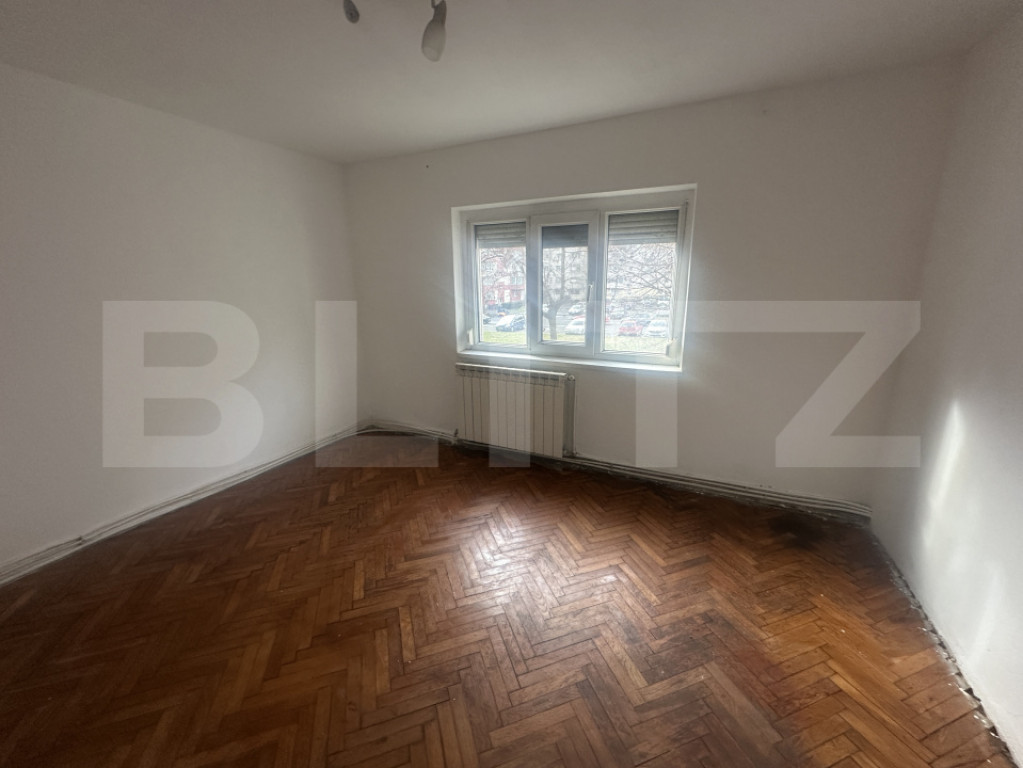 Apartamentul necesită renovare, reprezentând o oportunitate excelentă pentru amenajare după propriul gust. Este dotat cu parchet, ferestre cu termopane, centrală termică nouă și interfon, iar balconul este închis cu PVC, oferind un spațiu suplimentar util.