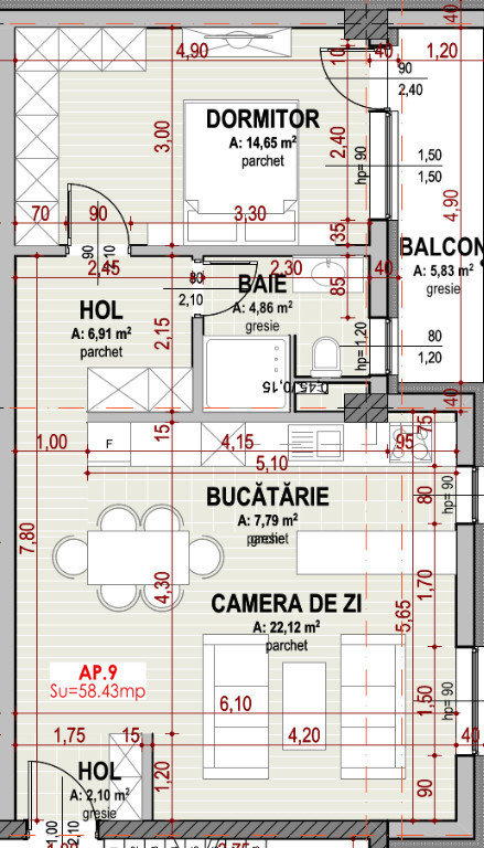 Suprafața utilă 59 m²