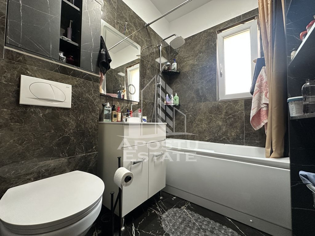 APOSTU ESTATE va propune spre vanzare un apartament cu 2 camere decomandat, situat in Chisoda. Drumul de acces spre imobil este pietruit. In apropiere sunt magazine si supermarket-uri precum Lidl, Profi, Mega Image, Penny, Scoala, gradinita la o distanta de 5 - 10 minute, acces facil la mijloace de transport in comun. Apartamentul se vinde complet mobilat si utilat, precum se observa in imagini. Imobilul se intinde pe o suprafata de 54 mp, este situat la etajul 3 si dispune de o intaltime a incaperilor de 2,85m. Compartimentare: - hol acces. - living. - bucatarie inchisa. - dormitor. - baie cu geam si dus. - dressing. - terasa amenajata de 18 mp. Detalii tehnice: - constructie realizata in anul 2020 din caramida Porotherm de 30 cm. - exterior izolat cu polistiren de 10 cm eps 80. - pereti despartitori complet din caramida (fara rigips) tencuiti mecanizat finisati cu glet si vopsea lavabila. - geamuri termopan cu 3 sticle pentru izolare fonica si termica superioara, foarte mari si luminoase dotate cu site si jaluzele. - centrala proprie pe gaz, incalzire prin pardoseala. - aparataje modulare Gewis. - usa acces securizata, usi interioare Porta Doors. - electrocasnice noi, in stare perfecta de functionare. (frigider, masina de spalat rufe, masina de spalat vase, aragaz, cuptor, hota). - aparat pentru aer conditionat. - mobilier de calitate inalta, realizat pe comanda pe toata suprafata apartamentului. - 1 loc de parcare in cf. - acces pe terasa amenajata din toate incaperile. Utilitati complete: curent, apa de la retea, canalizare, gaz. Pentru mai multe detalii nu ezitati sa ne contactati! Acceptam orice fel de credit bancar. Oferim consultanta si solutii financiare prin colaboratorii nostri pentru a obtine cel mai avantajos credit Ipotecar sau Noua Casa. Va asteptam cu drag la o vizionare chiar astazi! CP2660947