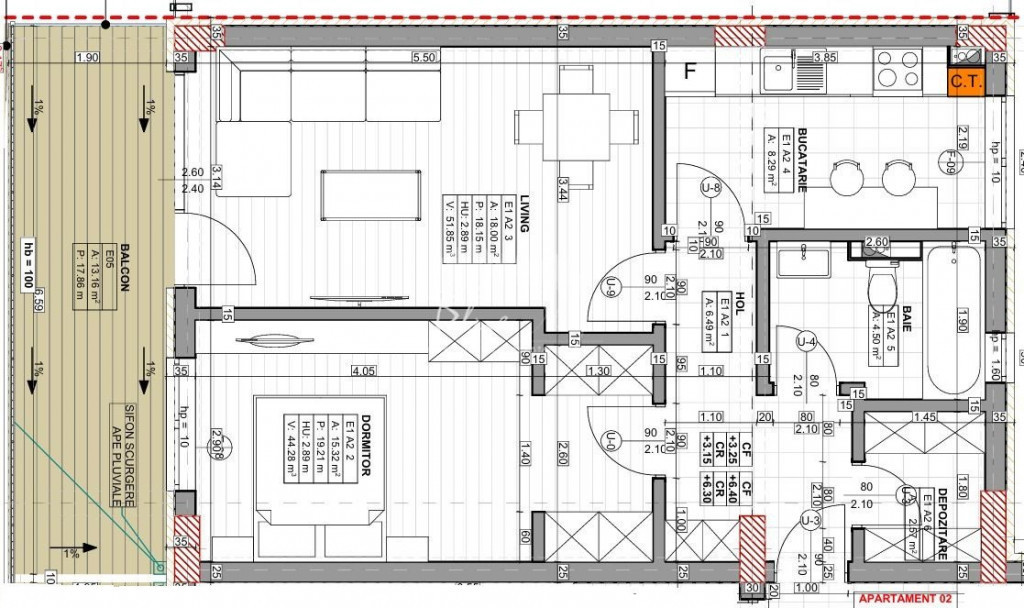 Suprafața utilă 68 m²
