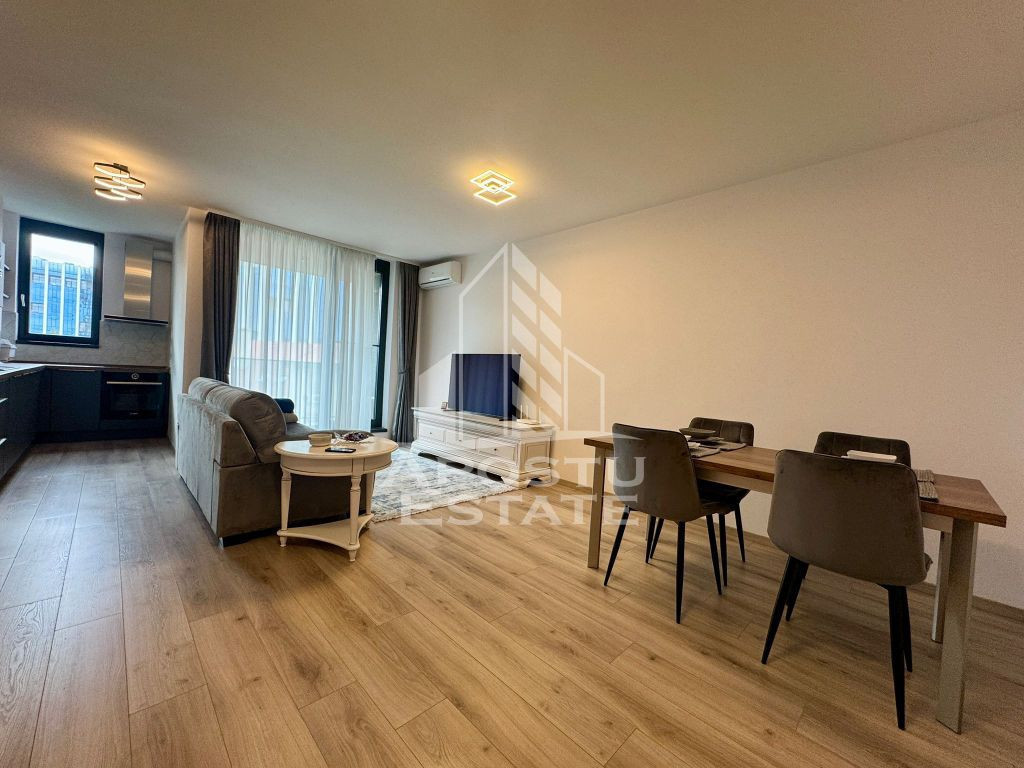 APOSTU ESTATE va propune spre inchiriere un apartament de lux cu 2 camere,open space, situat la etajul 3 zona Take Ionescu (Isho) unde punctele cheie sunt comunitatea de calitate, atentia tintita pentru amplasarea fiecarui imobil, materialele atent alese, compartiementarile inteligente si pachetul complet de utilitati. Imobilul se intinde pe o suprafata utila de 58 mp şi este compartimentat astfel: -living open space cu bucataria; -dormitor; - o baie -balcon deschis cu o vedere panoramica superba. Confortul termic este intretinut prin intermediul centralei termice (incalzire in pardoseala). Nu se accepta animale de companie. Dispune de loc de parcare ( subteran ) cost extra * Complet mobilat si utilat lux. Se inchiriaza doar pe termen lung ( minim un an de zile ). Se percepe garantie de 800 euro. Vă aşteptăm cu drag la o vizionare! Cp2743305