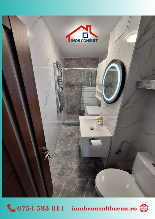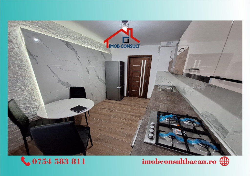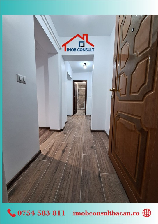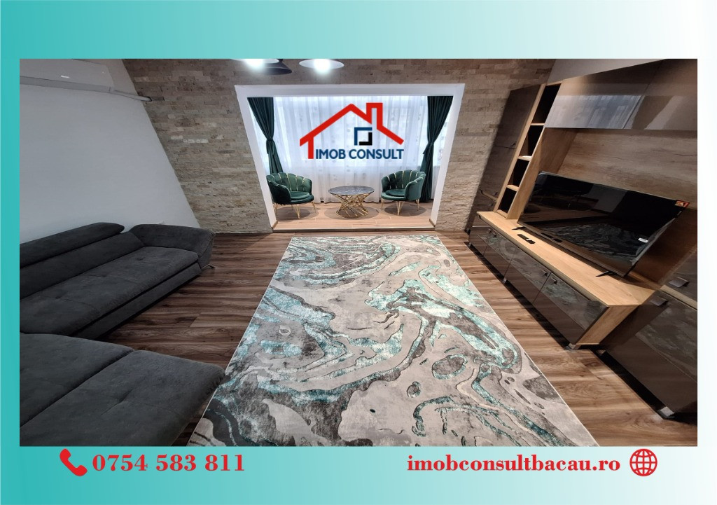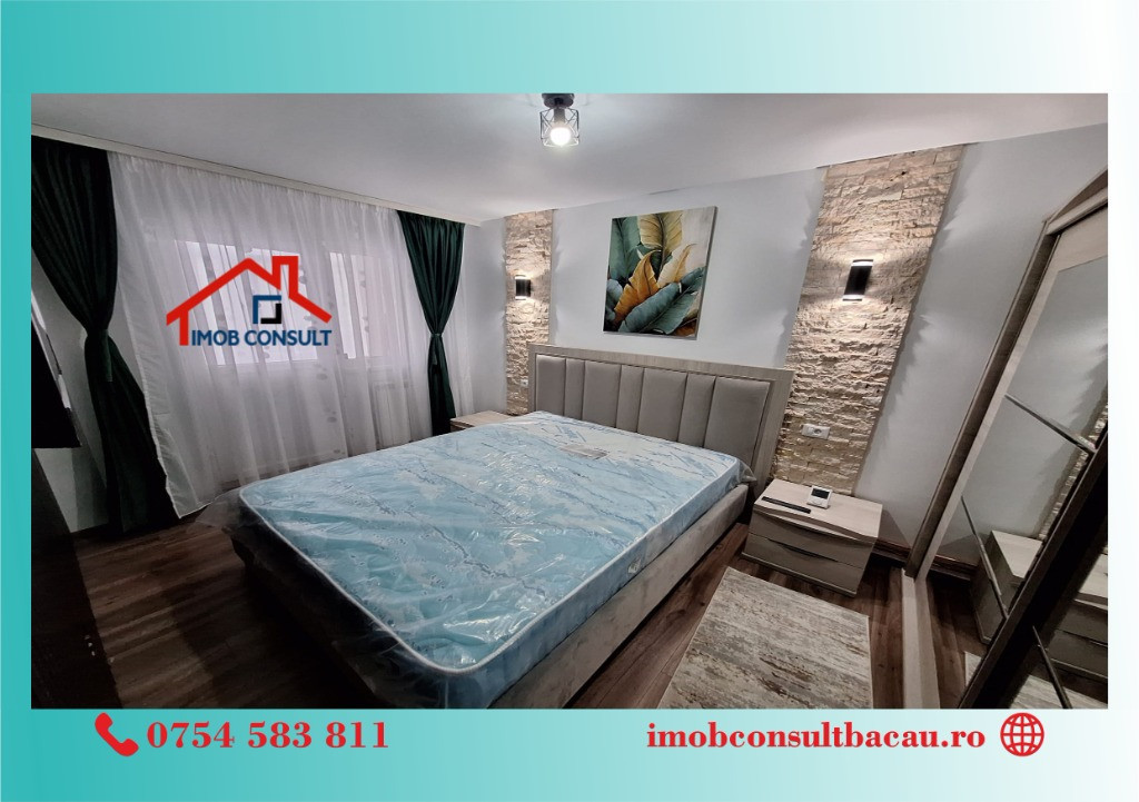 Imob Consult Bacau vă propune spre închiriere un apartament modern, situat în zona de Nord, într-un imobil cu regim de înălțime P+4, construit în anul 1986 și izolat termic. Apartamentul este amplasat la etajul 2 (etaj intermediar), oferind un echilibru ideal între confort și accesibilitate. Locuința are o compartimentare decomandată, este formată din două camere și dispune de două balcoane, ceea ce asigură un plus de spațiu și lumină naturală. Apartamentul a fost recent renovat integral, toate finisajele, instalațiile și dotările fiind noi, la prima utilizare. Este dotat cu centrală termică proprie, instalație de aer condiționat și tâmplărie PVC cu geam termopan, oferind un nivel ridicat de confort termic și fonic pe tot parcursul anului. Apartamentul se închiriază la complet mobilat si utilat, fiind ideal pentru persoane sau cupluri care își doresc o locuință modernă, într-o zonă bine cotată a orașului. Pentru detalii și programări pentru vizionare, ne puteți contacta la: • Cosmin: 0754 583 811; • Corina: 0740 288 297, sau vă așteptăm la sediul agenției noastre Imob Consult Bacău, situat pe strada Banca Națională nr. 27, la intersecția cu str. Neagoe Vodă, lângă Irish Pub.