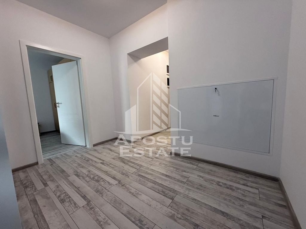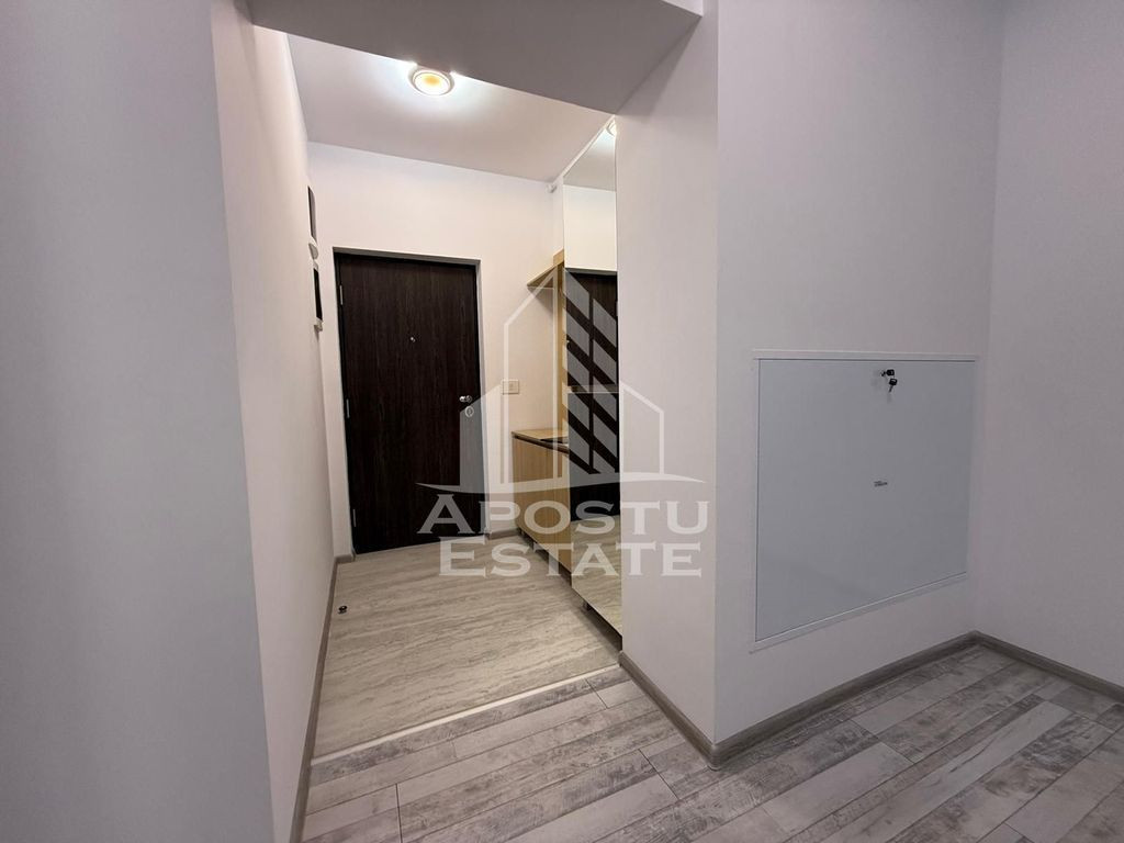 APOSTU ESTATE vă propune spre închiriere un apartament modern cu 2 camere si 1 loc de parcare subteran, situat într-o zonă frumoasa, ideal pentru cupluri, o familie sau persoane care doresc un spațiu confortabil. Suprafață utilă: 53 mp Compartimentare eficientă: Hol de acces Bucătărie complet mobilată și utilată, cu loc de luat masa Living luminos cu tv Dormitor matrimonial cu mini dressing Baie cu cadă și geam pentru ventilație naturală Confort și facilități: Centrală termică proprie pe gaz aparat de aer condiționat 2 balcoane 1 loc de parcare subteran inclus în preț Apartamentul este complet mobilat si utilat Prima inchiriere Localizare: Zona Aradului – în apropiere de magazine, școli, gradinite și mijloace de transport în comun. Ideal pentru: Familii Cupluri Profesioniști care lucrează remote sau au nevoie de birou acasă Preț chirie: 500€ Programează o vizionare! ID intern: CP2534466