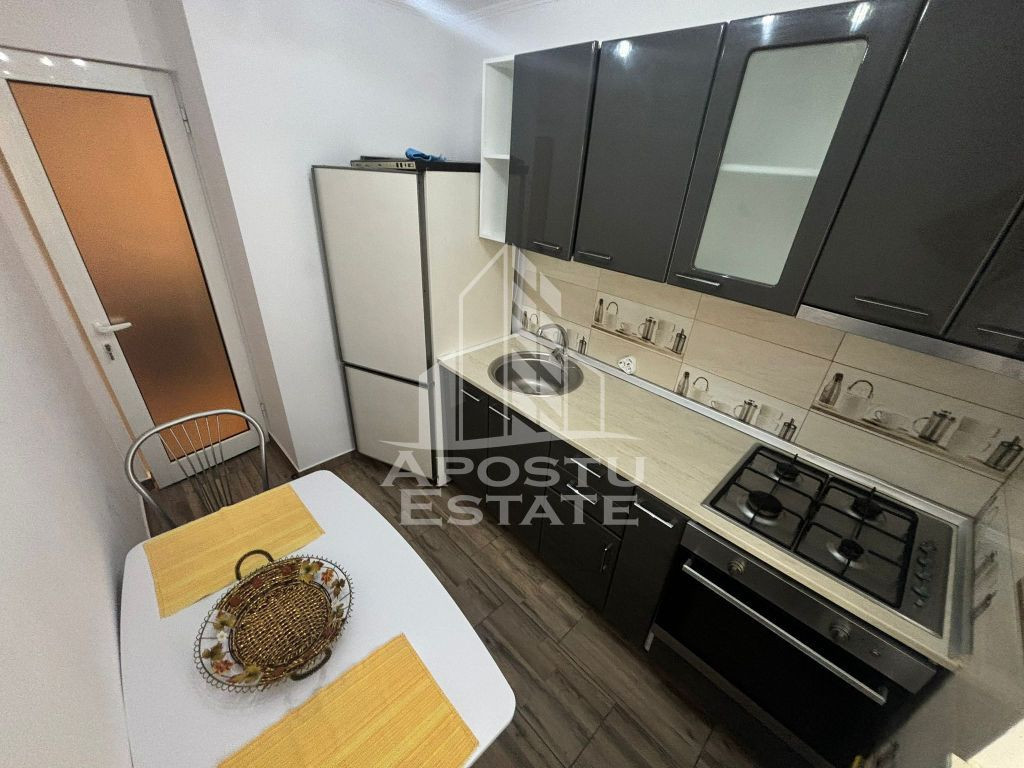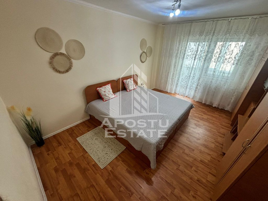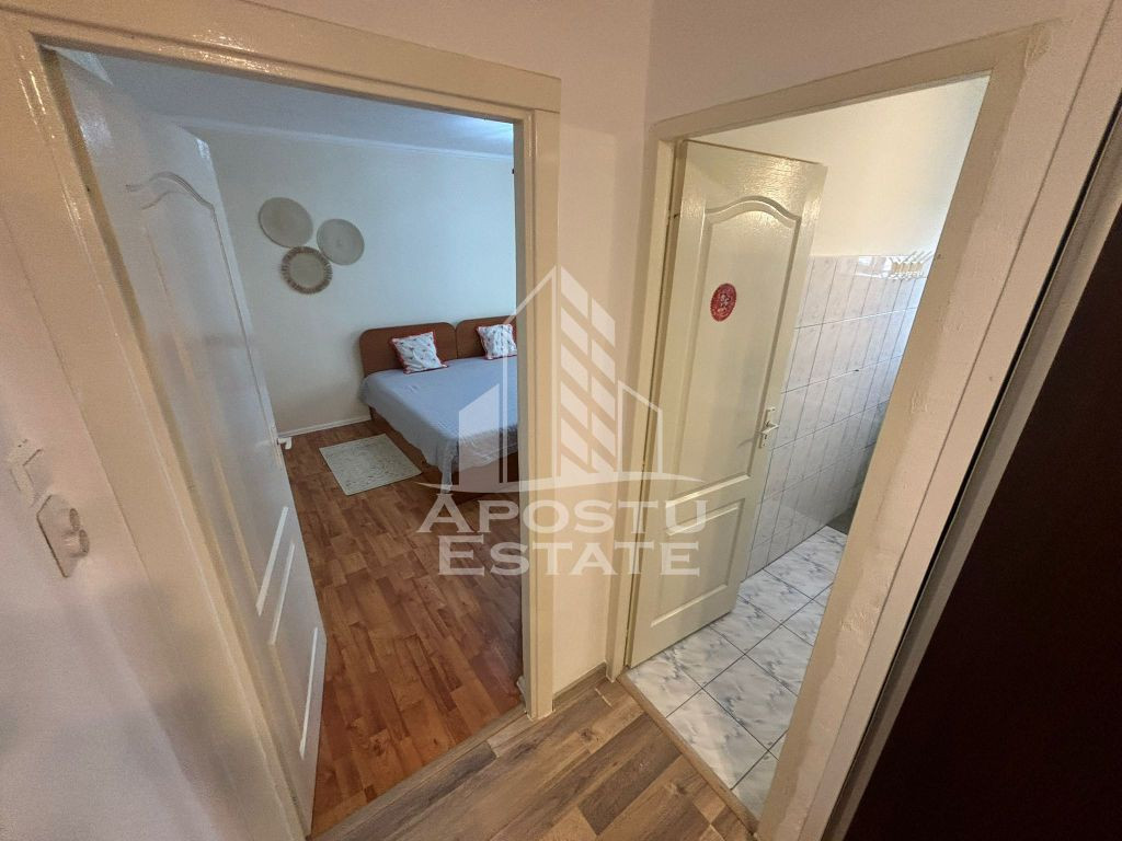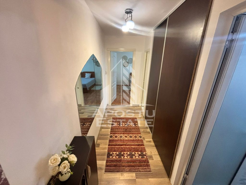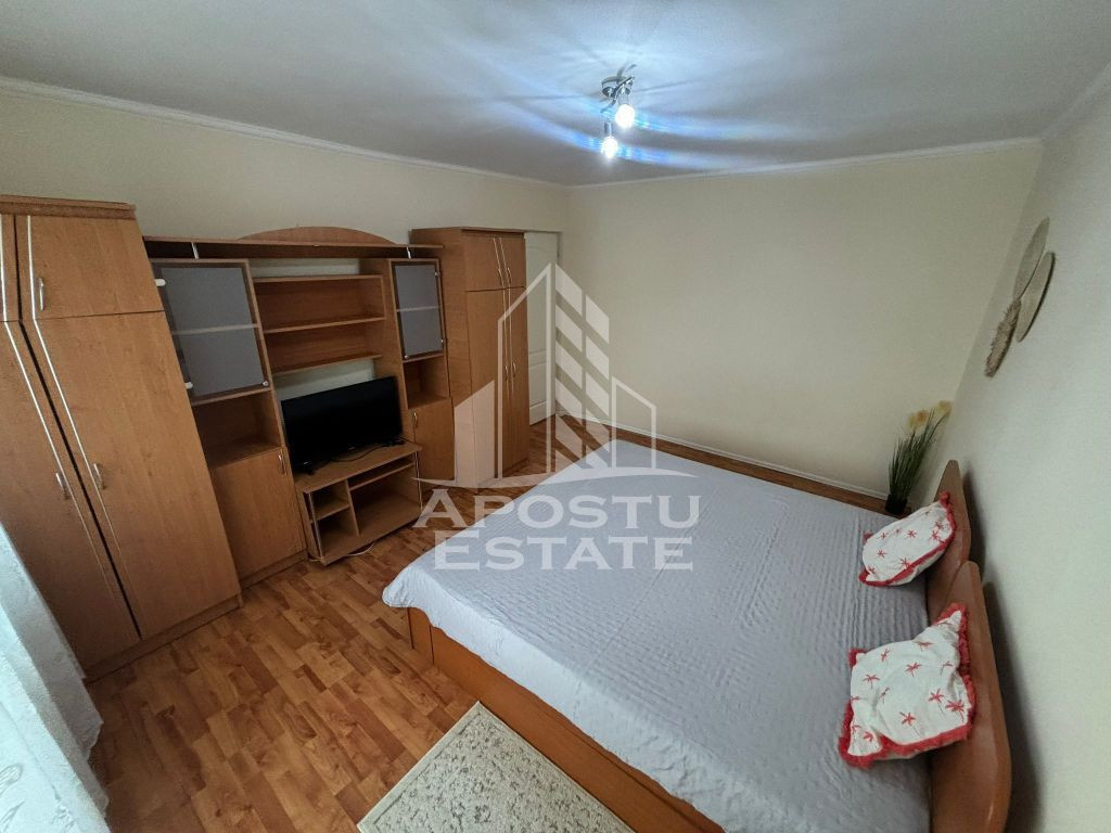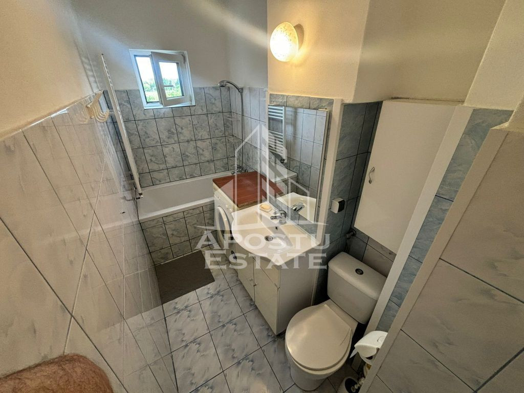 APOSTU ESTATE va propune spre inchiriere un apartament cu 2 camere, situat in zona AEM – o zona linistita si bine conectata la principalele puncte de interes din Timisoara. Apartamentul este dotat cu centrala proprie, asigurand confort termic si costuri eficiente de intretinere, fiind ideal pentru persoane active sau un cuplu care cauta un spatiu modern si bine compartimentat. Compartimentare: Living spatios si luminos Dormitor confortabil Bucatarie functionala, complet mobilata si utilata Baie moderna Hol de acces Dotari si beneficii: Centrala proprie Apartament curat si bine intretinut Zona AEM – acces rapid catre transport public, supermarketuri si facilitati urbane Pret: 350 Euro/luna Garantie: 350 Euro Va asteptam la vizionare pentru a descoperi acest apartament confortabil, situat in zona AEM!