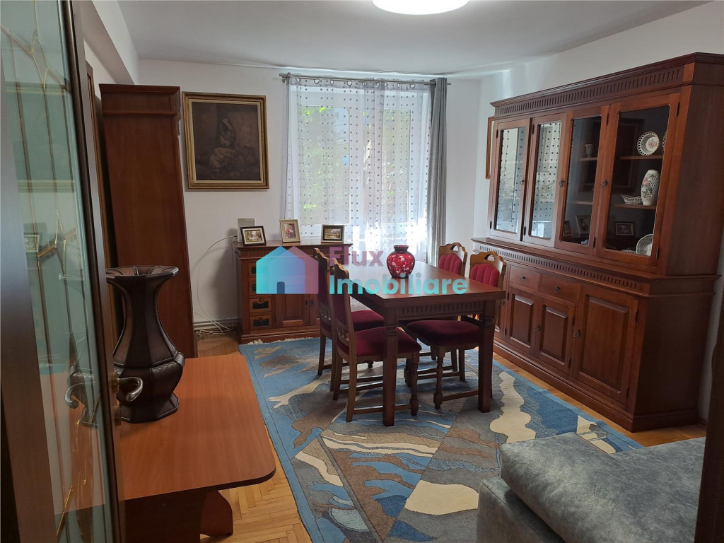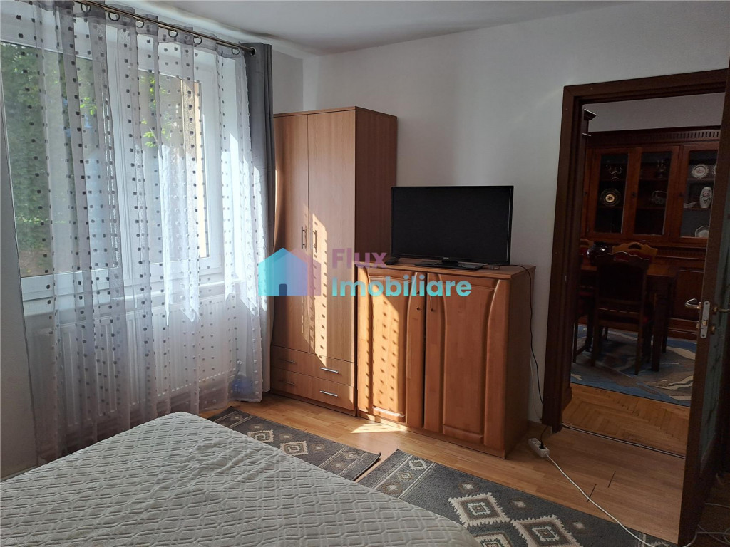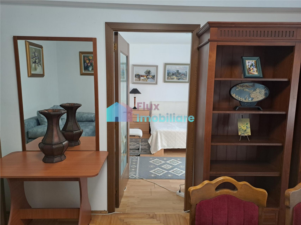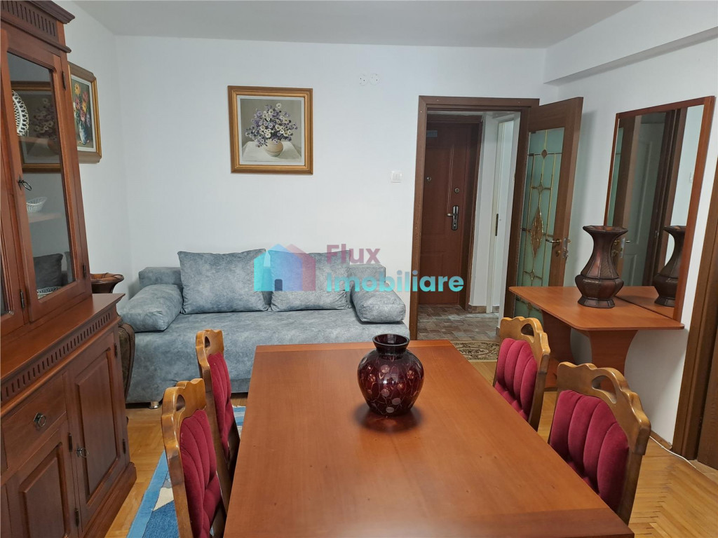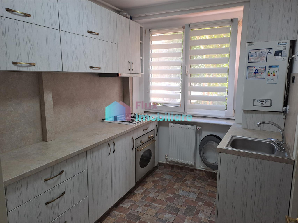 Flux Imobiliare va ofera spre inchiriere un apartament circular cu 2 camere in zona centrala, in apropierea Casei de Cultura, situat la parter, in bloc din caramida, izolat exterior. Apartamentul a fost renovat recent, are centrala termica si calorifere noi, tamplarie din pvc cu geam termopan, gresie, faianta, parchet, usa metalica. Este mobilat si utilat complet: plita pe gaz, cuptor electric, hota, frigider, masina de spalat rufe. Se inchiriaza pe termen lung, minim 12 luni. Chirie lunara 340 euro, se percepe si garantie de 340 euro.