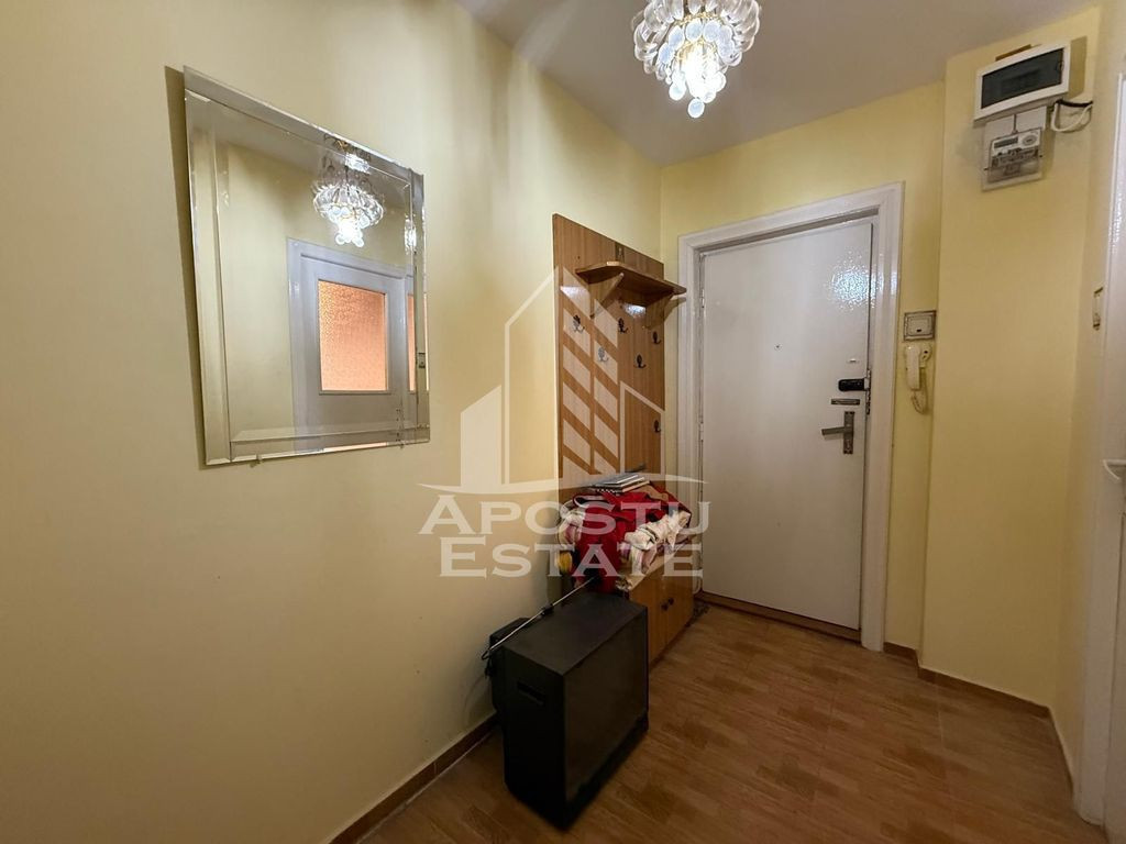 APOSTU ESTATE vă propune spre închiriere un apartament cu 2 camere, situat într-o zonă liniștită, ideal pentru cupluri sau o familie. Suprafață utilă: 55 mp Compartimentare eficientă: Hol de acces Bucătărie complet mobilată și utilată, cu loc de luat masa Living Dormitor matrimonial mobilat Debara Baie cu cadă și geam pentru ventilație naturală Confort și facilități: Centrală termică proprie pe gaz Aer condiționat Apartamentul este complet mobilat si utilat. Localizare: Zona Dacia – liniște, în apropiere de magazine, mijloace de transport în comun. Ideal pentru: Familii Cupluri Preț chirie: 450€ Programează o vizionare! ID intern: CP2563724
