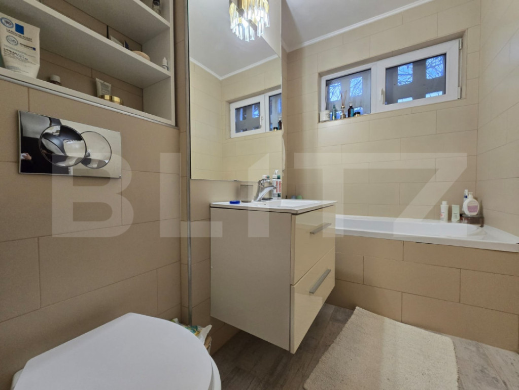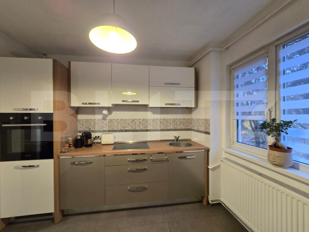 Blitz oferă spre închiriere un apartament elegant cu 2 camere, în cartierul Gheorgheni — zona Hotelului Royal. ???? Detalii apartament – Suprafață utilă: 55 m², compartimentare decomandată. – Living spațios – Bucătărie echipată și utilată: aragaz, cuptor, frigider, mașină de spălat rufe, centrală termică proprie – Dormitor confortabil, cu pat matrimonial și multiple spații de depozitare – Baie incapatoare cu cada – Etaj 1 / 4, într-un imobil ingrijit – Orientare sud-vestică, ce asigură lumină naturală pe tot parcursul zilei ✨ Dotări & avantaje premium – Încălzire prin calorifere cu centrală proprie – Spații aerisite, amenajate cu bun gust, pregătite pentru a fi locuite imediat ???? Locație & facilități adiacente – Acces rapid către FSEGA, Iulius Mall, Piața Cipariu, centre comerciale și mijloace de transport – Zonă liniștită, sigură și excelent conectată cu restul orașului – Ideal pentru persoane active sau cupluri care își doresc un apartament modern, luminos și bine pozitionat. ???? Programează vizionarea și descoperă cum acest spațiu poate deveni noul tău cămin în inima cartierului Gheorgheni! ✨ Cod ofertă / ID BLITZ: P157806 Id intern: P157806