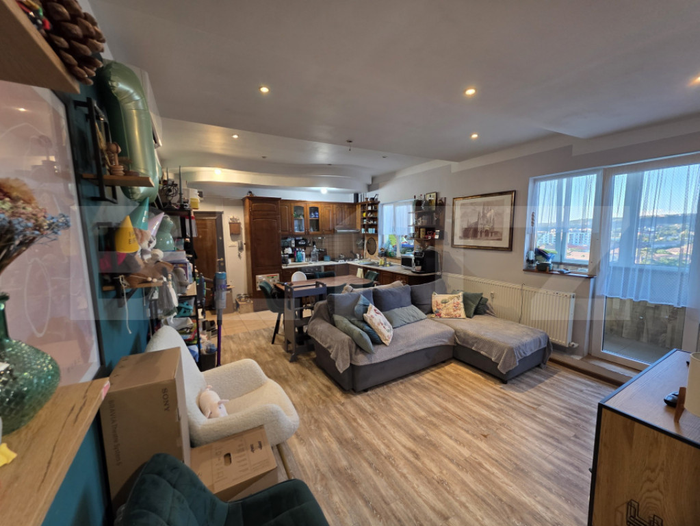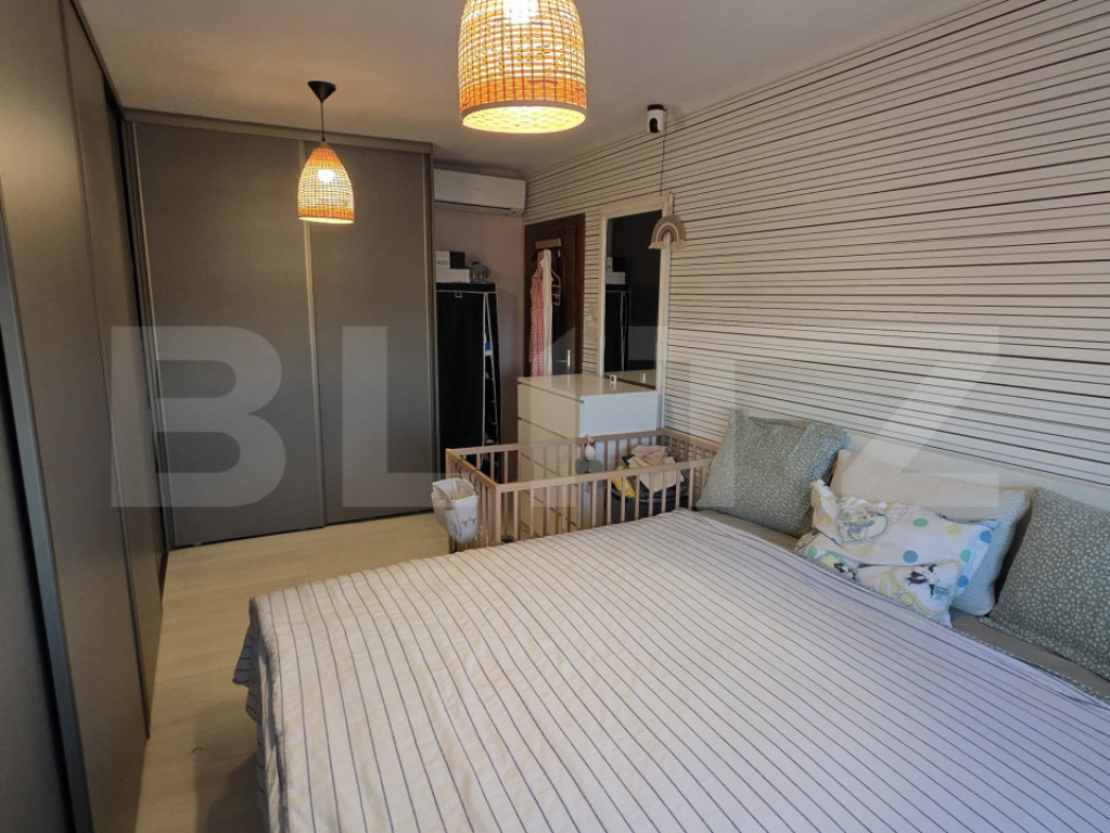 Blitz va ofera spre vanzare un apartament cu 2 camere, 55 mp utili, situat in cartierul Nufarul, langa Liceul Onisiflor Ghibu. Apartamentul dispune de o suprafata utila de 55 mp si este amplasat la etajul 11/11 intr-un bloc dotat cu lift. Locuinta este semidecomandata si se compune din antreu, living cu bucatarie open-space, balcon inchis cu o priveliste foarte buna si fara zgomot, hol de acces in, are un dormitor si o baie. Apartamentul este dotat cu: parchet laminat, gresie/faianta, ferestre termopan gealan, usi de interior din lemn masiv, mobilat si utilat complet cum se vede in poze. Apartamentul dispune de sistem de incalzire cu radiatoare (calorifere), realizat prin reteaua de termoficare a orasului. Reteaua de termoficare a blocului a fost reabilitata in vara anului 2024 si a fost dotat cu instalatii noi si pompa de recirculare a apei din calorifere si a apei calde, apa calda vine in 10 secunde la etajul 11. Blocul din care face parte apartamentul este dotat cu sistem de supraveghere video. In proximitatea acestuia se gasesc magazine, Liceul Onisifor Ghibu (la 1 minut, se vede si in poze), Lotus Mall, banci, farmacii, scoli, gradinite, Baile Felix (5km), statii ale mijloacelor de transport in comun, zone verzi. Este o alegere excelentă pentru familii, tineri profesioniști sau investitori interesați de o zonă cu potențial de închiriere ridicat. Hai cu mine la o vizionare! Cod ofertă / ID BLITZ: P155256 Id intern: P155256