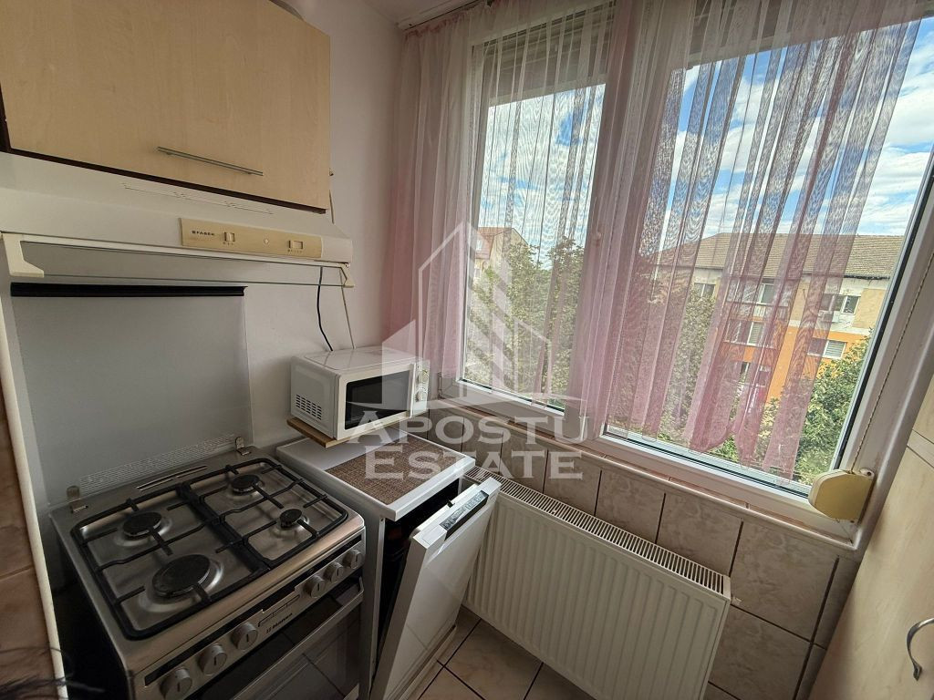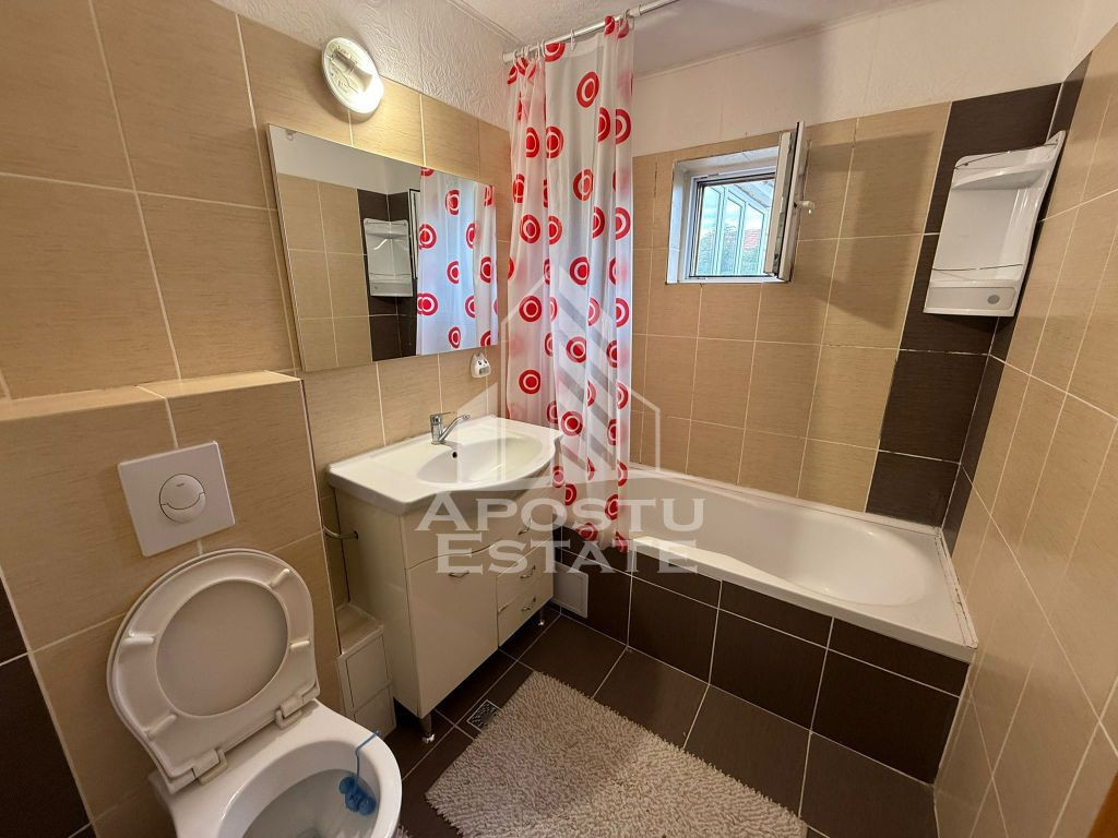 Apostu Estate vă propune spre închiriere Apostu Estate vă propune spre închiriere un apartament modern, cu 2 camere Detalii apartament Suprafață utilă: 56mp Compartimentare: hol de acces, living luminos și spațios, bucătărie complet mobilată și utilată cu loc de luat masa, dormitor matrimonial mobilat, baie cu cadă și geam pentru ventilație naturală, balcon Etaj: 4 din 4 An construcție: 1990 Confort și facilități Incalzire colterm Încălzire prin calorifere Aragaz, frigider, mașină de spălat rufe,masina de spalat vase TV, internet, cablu Geamuri termopan PVC Interfon Zonă liniștită și bine conectată Aproape de mijloace de transport, magazine, școli Ideal pentru Cupluri Familii mici Studenti Preț chirie: 400 € Garanție: 400 € Perioada minimă de închiriere: 12 luni Programează o vizionare! ID intern: CP2683101
