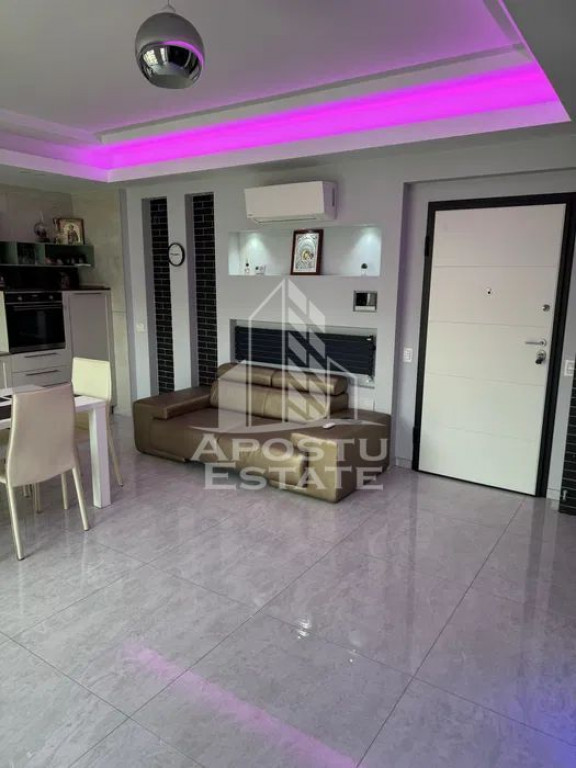 Apostu Estate va propune spre vanzare un apartament cu 2 camere, zona Giroc-Lidl. Disponibil la etajul 5 din 5 ,cu lift, cu o terasa spatioasa de 9 mp si o suprafata de 51mp, imobilul este compartimentat astfel: - Hol acces - Bucatarie cu living open space - masa dining + canapea extensibila - Hol tranzit cu masina de spalat - Baie - cu cada si geam pentru aerisiere - Dormitor cu pat si dressing Confortul termic se realizeaza cu ajutorul centralei pe gaz cu incalzire in pardoseala si a aparatului de aer conditionat.Apartamentul se afla in complex rezidential cu acces la piscina privata Se vinde mobilat complet. Vecinatati: - Lidl, Penny la 5 minute - Mijloace de transport in comun la 5 minute Va asteptam cu drag la vizionare! CP2716569