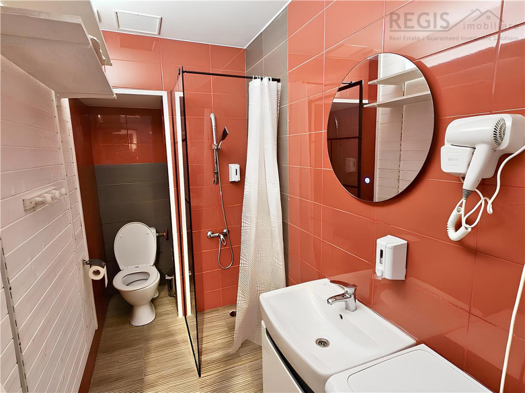 ID intern: 6360 Disponibil din 9 Februarie. REGIS Imobiliare va ofera spre inchiriere un apartament cu 2 camere in centrul Brasovului. Aceasta se afla intr-o casa istorica pe str. Gheorghe Baritiu 6, paralel cu Biserica Neagra si Piata Sfatului. Accesul se face printr-un coridor interior. La finalul coridorului, se afla o gradina de unde se aude paraul de dupa ziduri. Detalii: - Suprafata 40 mp utili - 2 camere - Parter - Centrala proprie - Orientare SV (soare pe timpul zilei si seara) Compartimentare semidecomandata: - 2 dormitoare, bucatarie, hol, baie si terasa Utilat si mobilat cu: - plita, cuptor, hota, frigider, masina de spalat rufe si TV - 2 paturi, 2 dulapuri, 1 canapea, 1 masa cu 4 scaune si 2 noptiere Zona: - Transport public statia Livada Postei (350 m) - Piata Sfatului si Biserica Neagra (180 m si 300 m) - Poarta Schei si Strada Sforii (550 m) - Supermarket Carrefour, La Doi Pasi, Mega Image si Piata (300 m - 950 m) - Patinoarul Olimpia (800 m) - Sala de Stay Fit Gym si parc de calisthenics (1,2 km si Sub Tampa) - Parcul Livada Postei, Nicolae Titulescu si Sub Tampa (600 m si 950 m) - Universitatea Transilvania si American Hotel Academy (400 m si 900 m) Va astept cu drag la vizionare! Comisionul agentiei este 50% TVA din valoarea chiriei pe o singura luna.