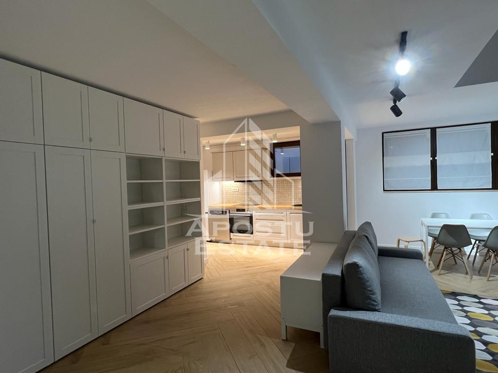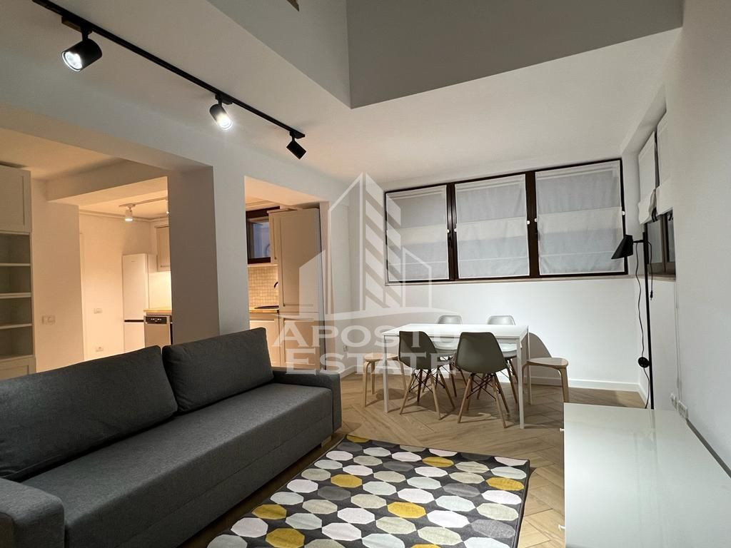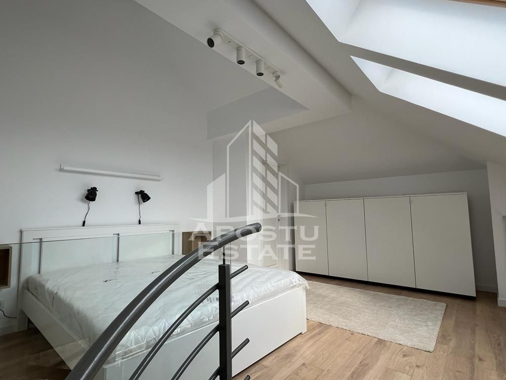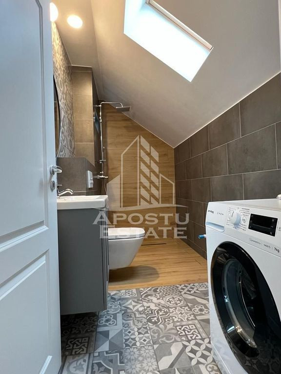 Apostu Estate vă propune spre închiriere un apartament modern, pe două niveluri, situat într-un bloc nou, finalizat în anul 2022. Locuința se află la etajul 3 al unui imobil cu regim mic de înălțime, având o suprafață utilă de 65 mp, la care se adaugă un balcon generos de 8 mp și un spațiu de depozitare de 11 mp. Compartimentare: Nivel 1: living spațios open-space cu bucătărie, baie de serviciu și acces pe balcon cu vedere spre o zonă exclusiv de case; Mezanin: dormitor matrimonial, baie principală și o zonă generoasă de depozitare. Apartamentul se închiriază complet mobilat și utilat, conform fotografiilor de prezentare, inclusiv cu TV (care nu apare în imagini). De asemenea, este inclus și un loc de parcare înscris în CF. Imobilul face parte dintr-un minicomplex rezidențial format din patru blocuri, cu acces facil la facilități comerciale. Pret 500 euro Garantie 500 euro