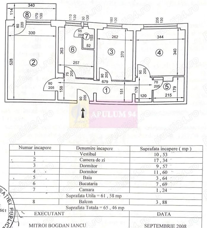 Agentia Imobiliara Apulum 94 Vă propune spre vânzare un apartament de 3 camere situat pe Bulevardul Alexandru Obregia la etajul 2 dintr-un imobil de 10 niveluri. Este locuința ideală pentru o familie care își dorește un cămin "la cheie", situat într-o zonă verde și liniștită, dar cu acces instant la toate facilitățile urbane. Puncte Forte & Dotări (Se vinde exact ca în poze!): Apartamentul a fost renovat cu atenție și se vinde complet mobilat și utilat, fiind gata de mutat fără niciun alt efort depus: Bucătărie: Complet utilată (frigider, mașină de spălat vase, electrocasnice), plus o cămară spațioasă pentru depozitare. Tehnologie & Climatizare: 3 televizoare incluse și 2 aparate de Aer Condiționat. Confort: Mașină de spălat rufe cu funcție de uscător, balcon închis. Eficiență: Bloc construit în 1978, reabilitat termic (costuri de întreținere foarte mici iarna). Apartamentul este răcoros vara și călduros iarna. Configurație: Suprafață: 65.5 mp utili. Tip: Decomandat (compartimentare optimă pentru intimitate). Etaj: 2 10. Locație și Facilități (Totul la 2-5 minute distanță): Locația este imbatabilă, oferind un mix rar de liniște și proximitate: Educație: Școala nr. 108 (100m) și Liceul Octav Onicescu (200m) copiii ajung în siguranță, pe jos. Cumpărături: Mega Image și Profi chiar la parterul blocului; Piața Străduinței la doar 100m. Timp liber: Metrou Piața Sudului și Mall Sun Plaza la aproximativ 15 minute de mers pe jos. Parcul Girosan si multiple locuri de joaca pentru copii in apropiere. Ambiant: Zonă cu multă vegetație, ferită de zgomotul intens al traficului.