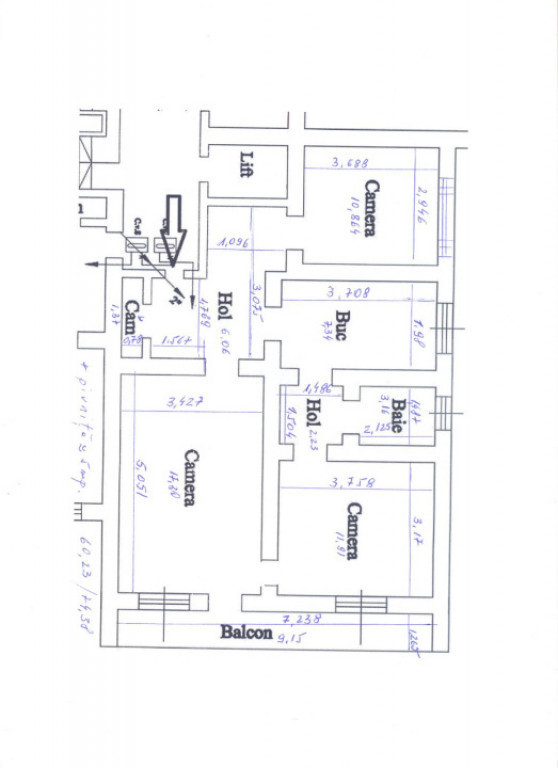 Apartament cu 3 camere, 60 mp, confort 1, vedere deosebita -