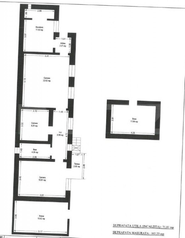 Blitz iti propune spre achizitie acest apartament cu 3 camere, situat într-o clădire din 1935- îmbină farmecul construcțiilor istorice cu oportunități moderne de personalizare. Cu două intrări separate, locuința îți oferă flexibilitate în amenajare și utilizare. Una dintre intrări include o terasă mică, care poate fi extinsă pentru a crea un spațiu mai generos de relaxare în aer liber. Apartamentul păstrează elementele autentice ale acelor timpurii: tavane înalte, ferestre mari, parchet original parțial și tocărie din lemn, fiind construit solid, din cărămidă, cu demisol. Partea din clădire în care se află a fost renovată și beneficiază de izolație exterioară, asigurând confort termic. Pe lângă cele 3 camere, proprietatea include o anexă lipită de clădire-garaj, care poate deveni o a patra cameră, un spațiu de locuit confortabil sau un birou modern, sau il puteti folosi ca si garaj. În prezent, apartamentul funcționează ca birou, dar poate fi ușor transformat într-o locuință primitoare. A fost parțial renovat, oferindu-ți ocazia să personalizezi finisajele în funcție de dorințele tale. Situat într-o zonă semicentrala, cu vecini de treabă și înconjurat de spațiu verde, apartamentul oferă un colț de relaxare în mijlocul orașului. Locația sa strategică, aproape de zona centrală, îți asigură acces facil la școli renumite, magazine, clinici și alte facilități urbane. Nu te limita la imagini – acest apartament are mult mai multe de oferit. Sună acum și hai să descoperim împreună potențialul său la o vizionare! Apartamentul se poate prelua cu chiriasii actuali, chiria fiind de 500e/luna. Cod ofertă / ID BLITZ: P138155 Id intern: P138155