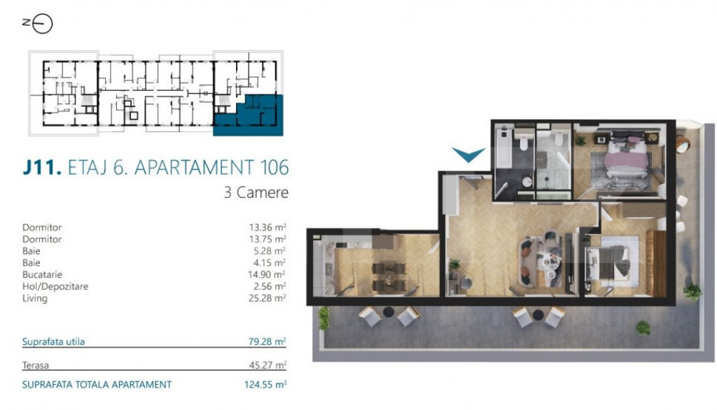 Apartament cu 3 camere, 79 mp, Ansamblu Rezidential, zona RI
