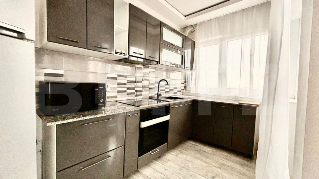 Blitz vă propune spre închiriere un apartament spațios și luminos, situat la etajul 5 din 6 al unui imobil prevăzut cu lift, în cartierul Nufărul. Proprietatea a fost renovată recent și oferă o compartimentare funcțională, fiind pregătită pentru prima închiriere. Suprafață utilă: 86 mp; Zona de zi: Living tip open-space integrat cu bucătăria; Dormitor Matrimonial: Prevăzut cu dressing generos; Dormitor Secundar: Dotat cu baie proprie; Băi: 2 băi în total; Spații exterioare: Terasă de 40 mp și un balcon suplimentar; Vedere: Panoramă deschisă spre oraș. Bucătărie complet utilată: Plită pe inducție, cuptor, cuptor cu microunde și frigider; Tehnologie: Smart TV, conexiune internet, interfon; Spălătorie: Mașină de spălat cu uscător incorporat; Confort: Rulouri la ferestre, contorizare separată a utilităților, apartament foarte luminos. Locuri de parcare: Sunt disponibile 2 locuri de parcare dedicate; Accesibilitate: Imobilul dispune de lift. Cod ofertă / ID BLITZ: P168734 Id intern: P168734